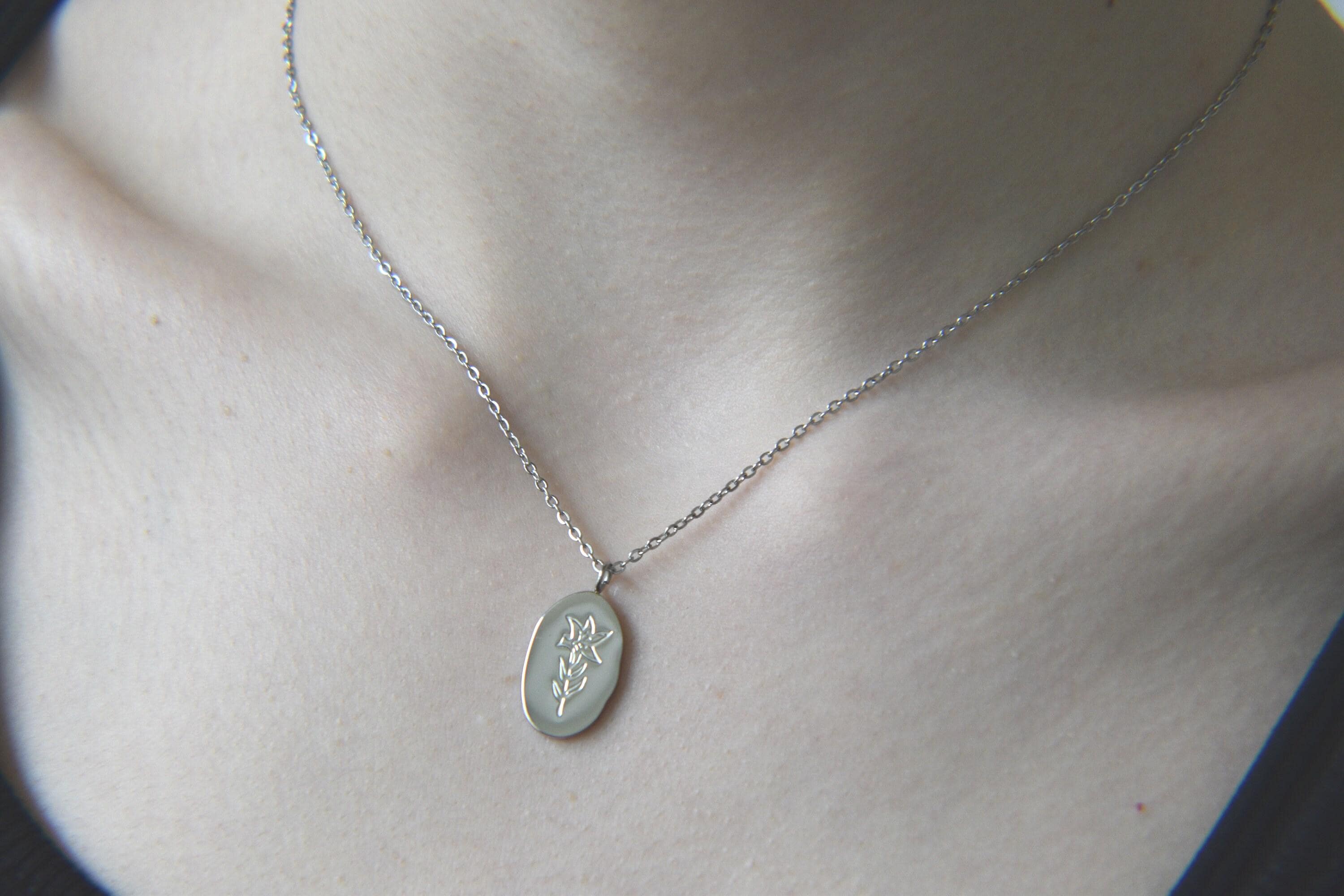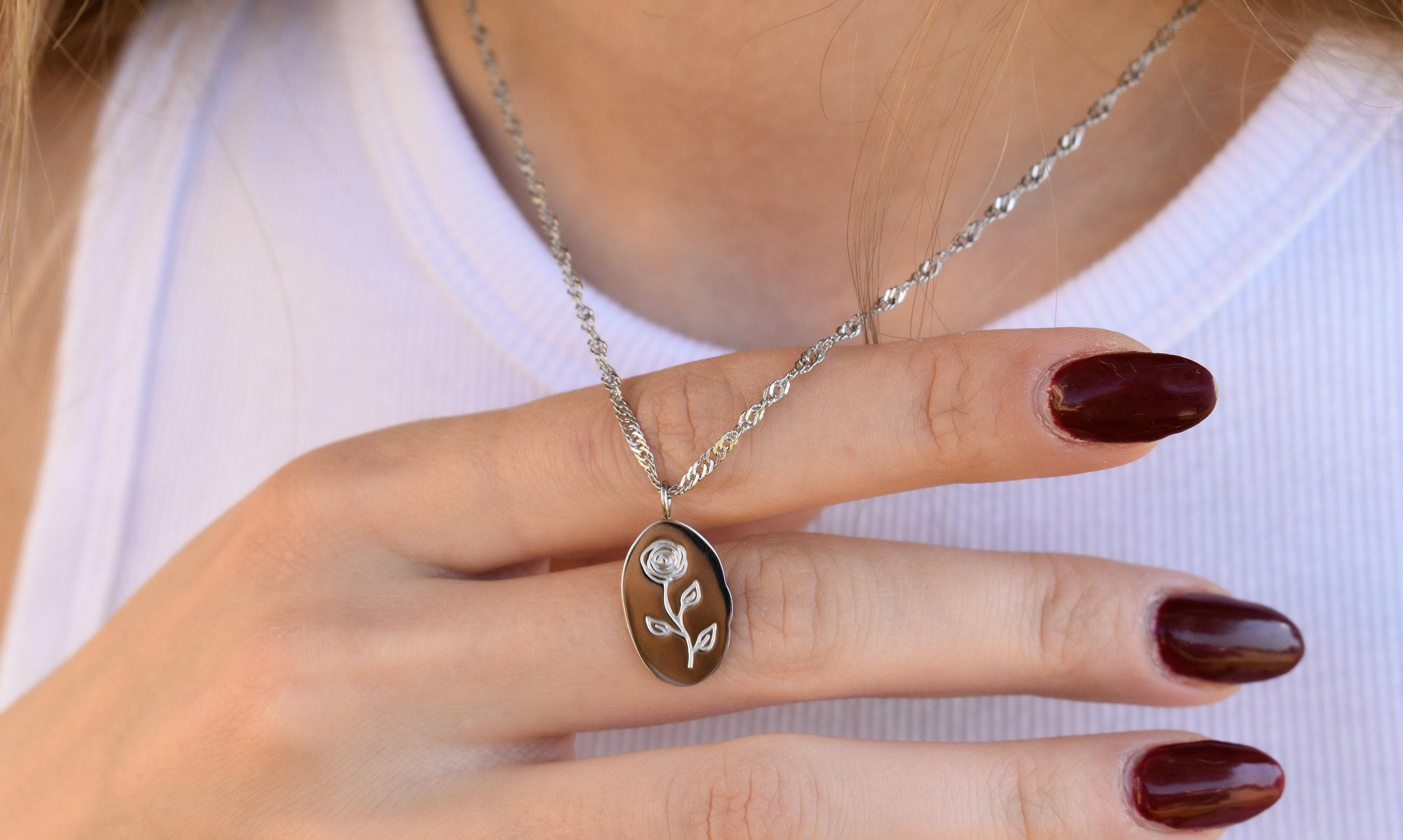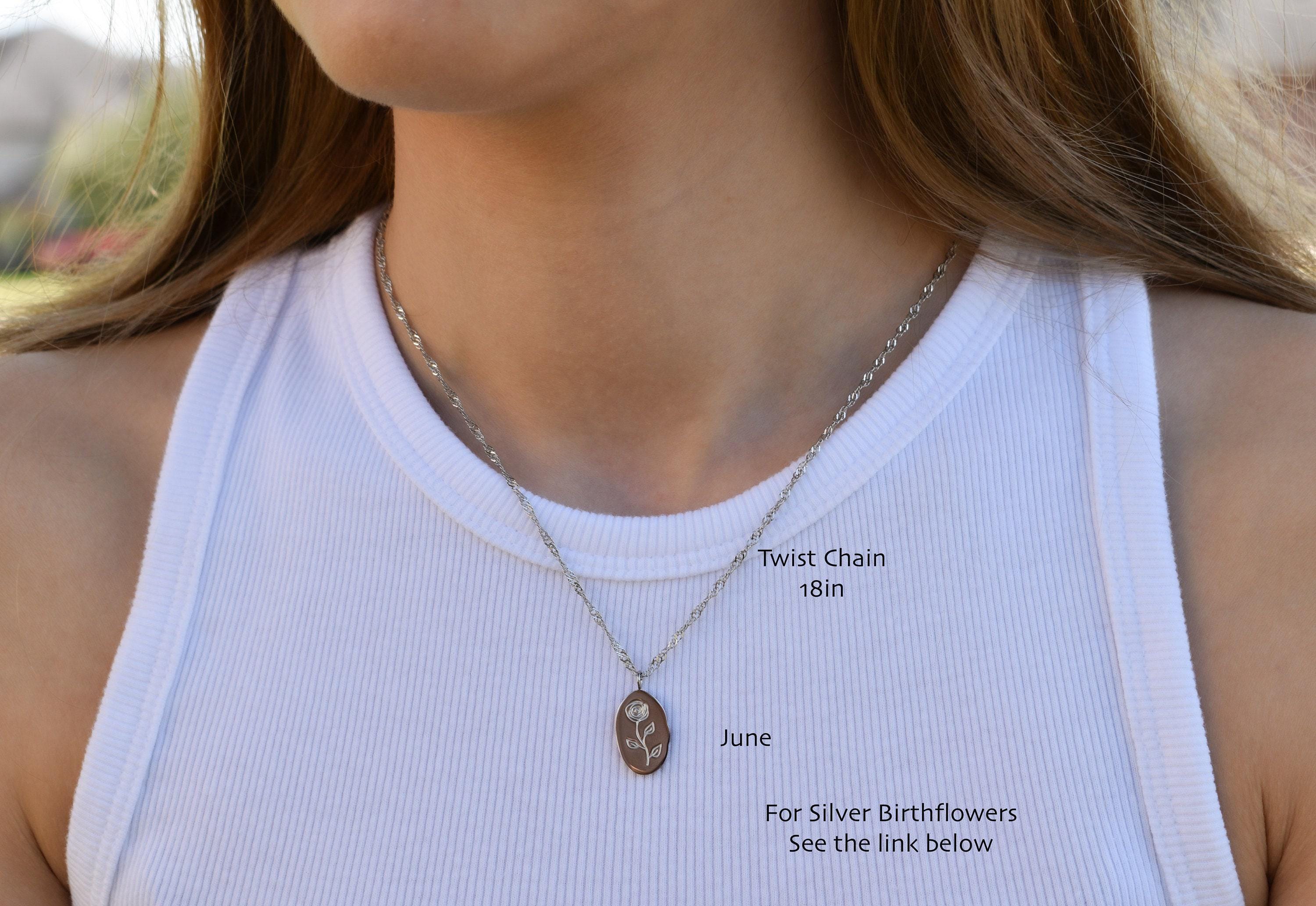 Silver BirthFlower Necklace, Birth Flower Necklace, Flower Necklace, Floral Zodiac Necklace, Birth Month Silver Necklace Waterproof Jewelry