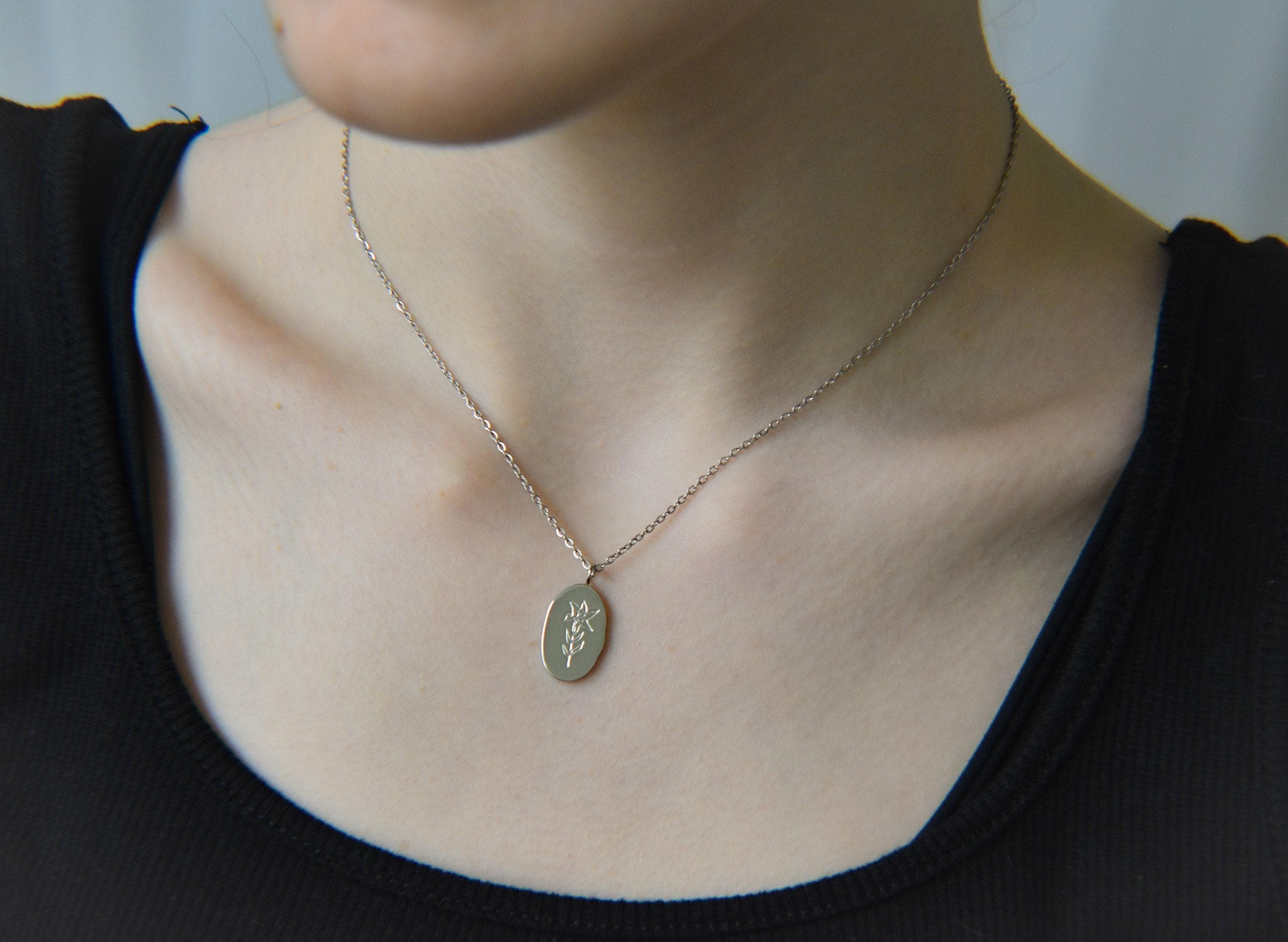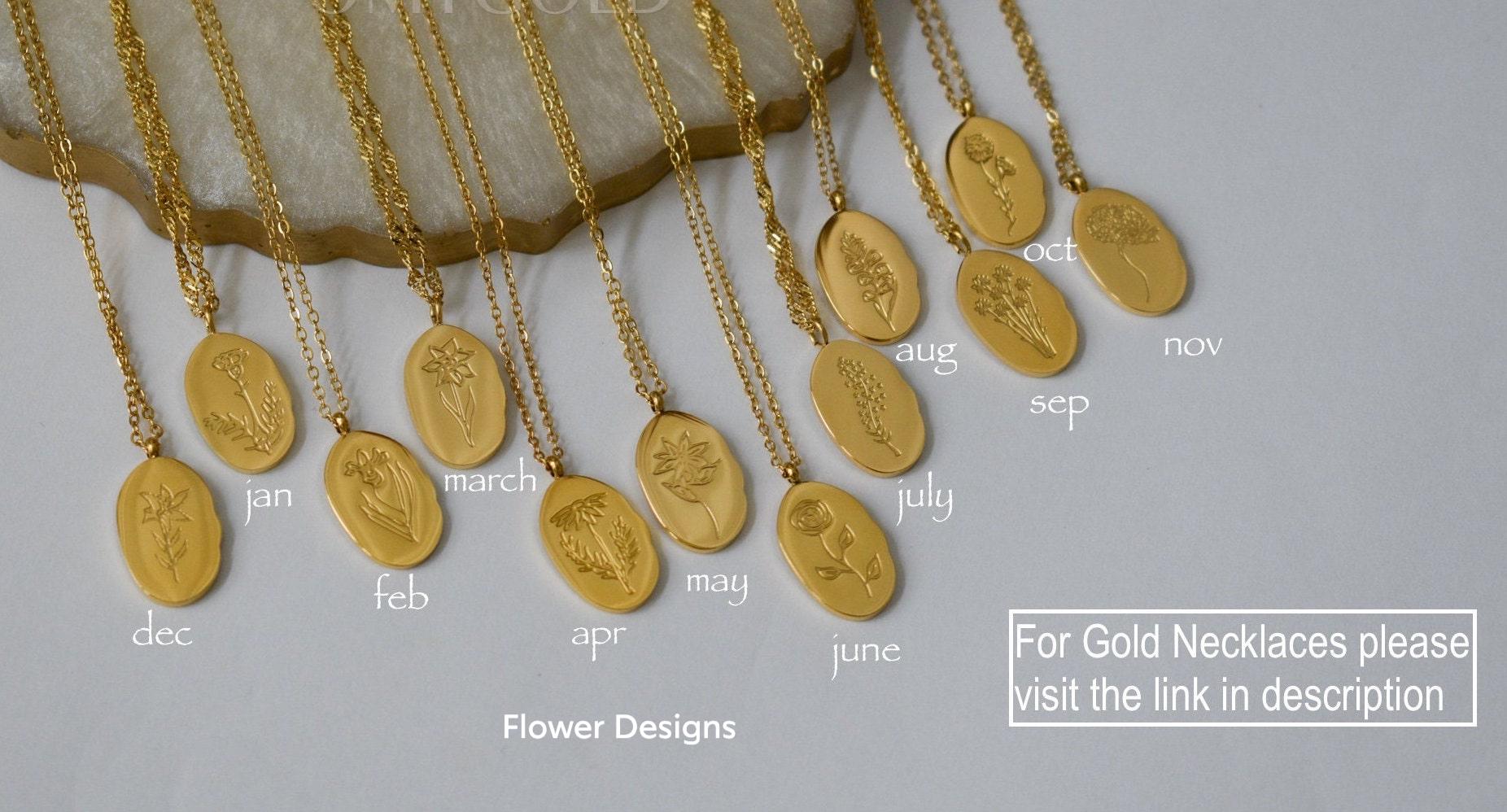 Each necklace features a delicate flower pendant that corresponds to the flower associated with your birth month.