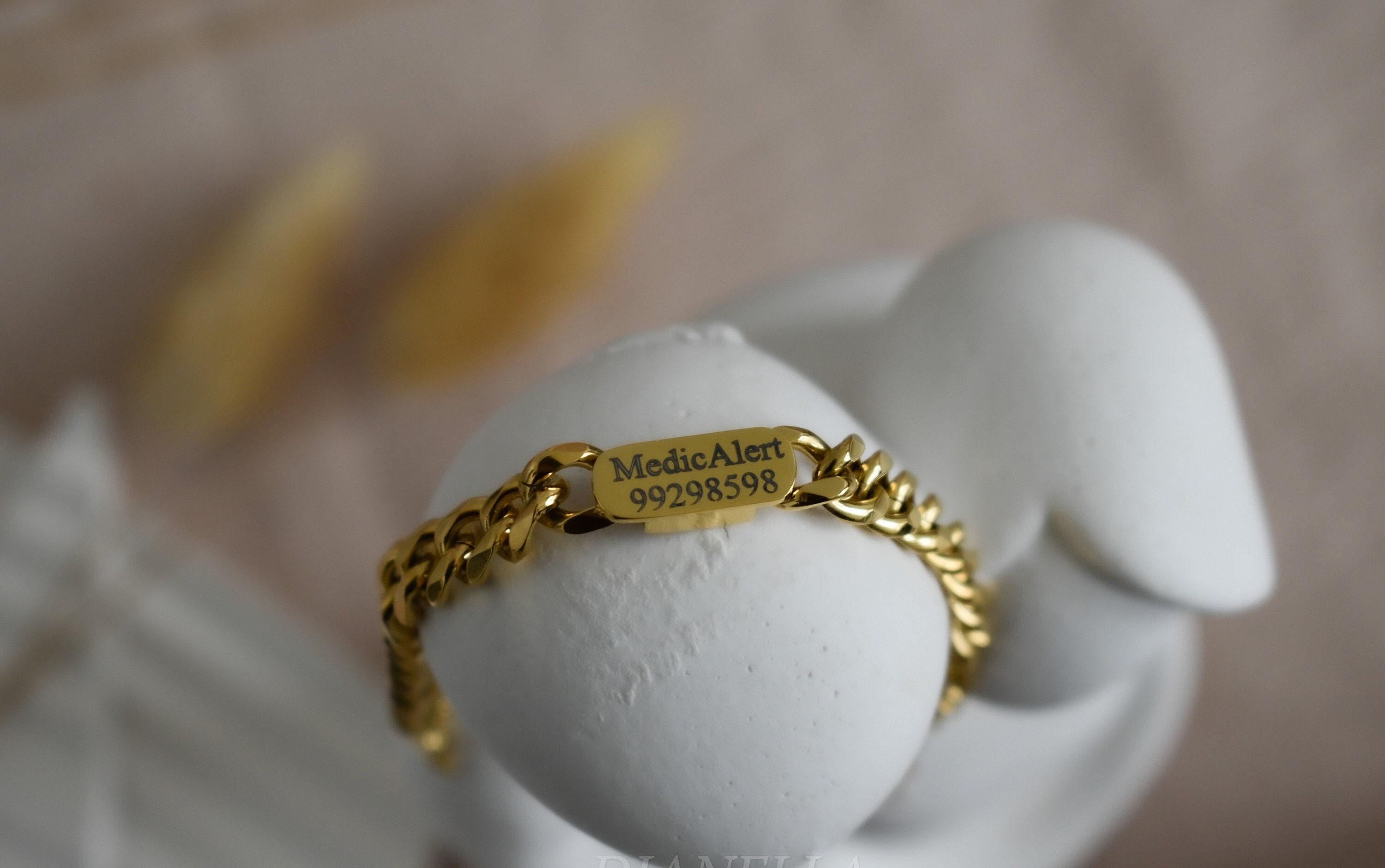 18k Gold Curby Miami Chain Bracelet with Flat Bar for Name Engraving, Name Custom Personalized Bracelets Waterproof no tarnish Jewelry