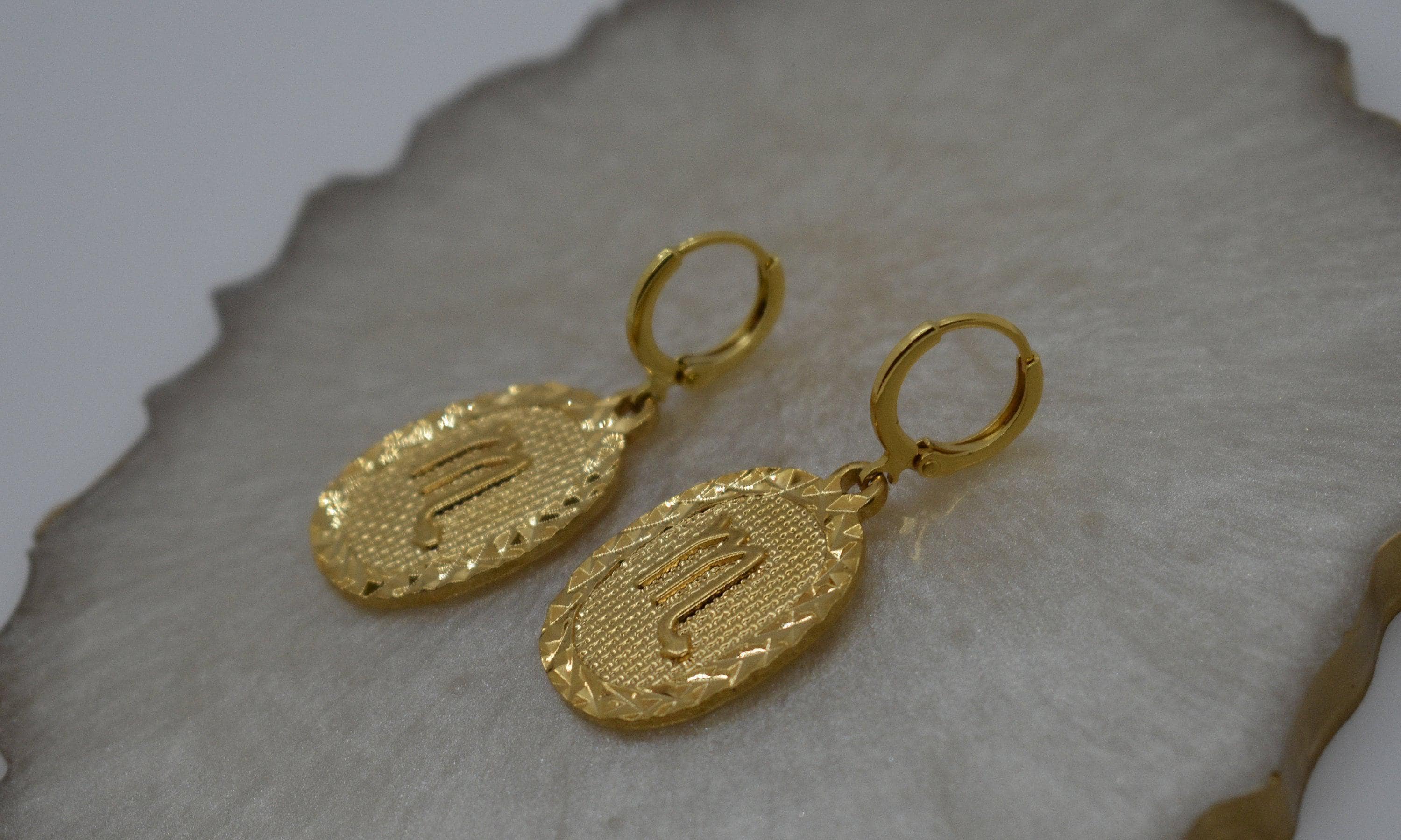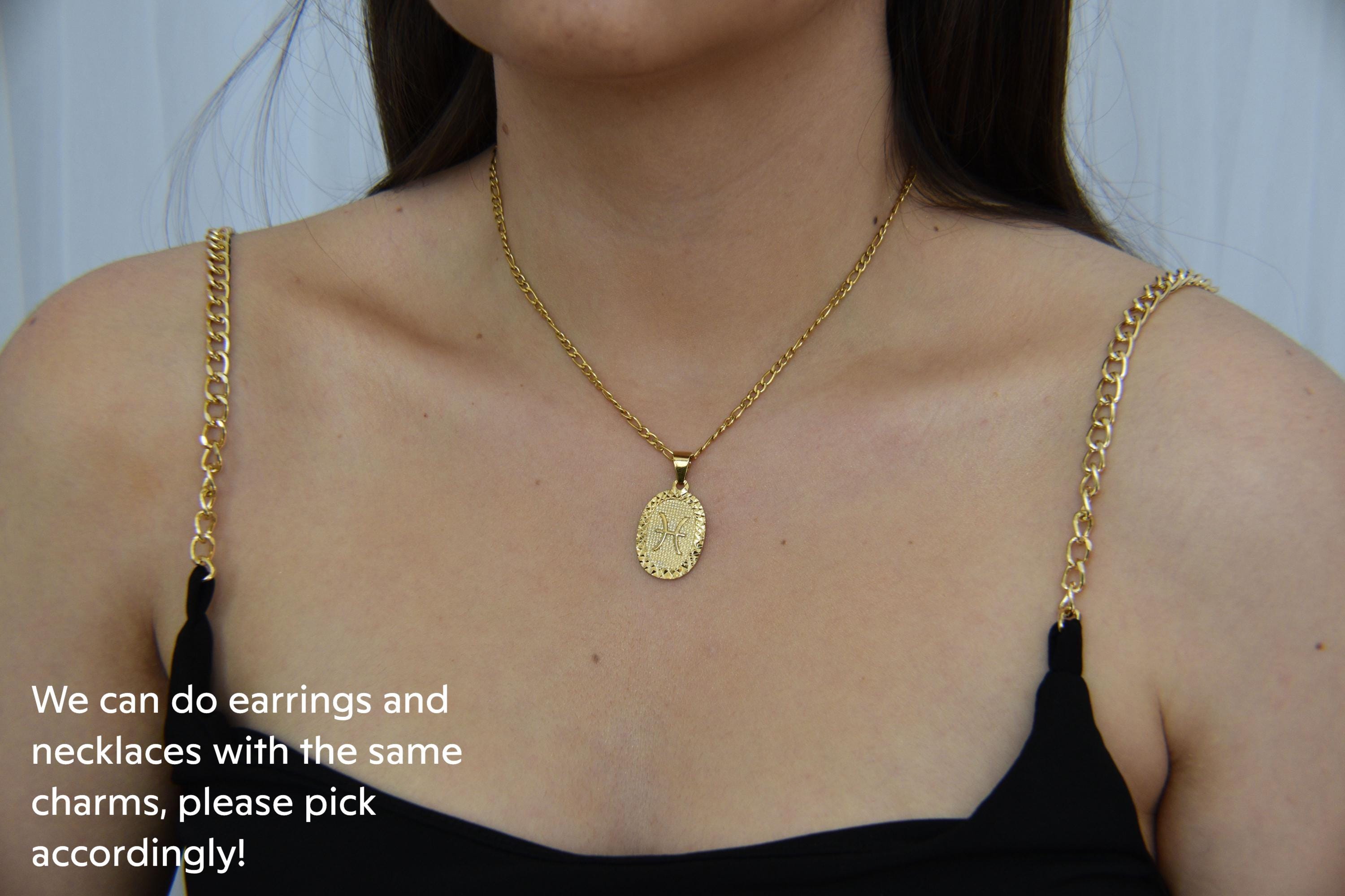 You will receive a pair of earrings with oval zodiac pendants. There are options to purchase matching necklaces as well. We have quite a lot of chain types and can customize the length as well. Let us know if you have any questions.