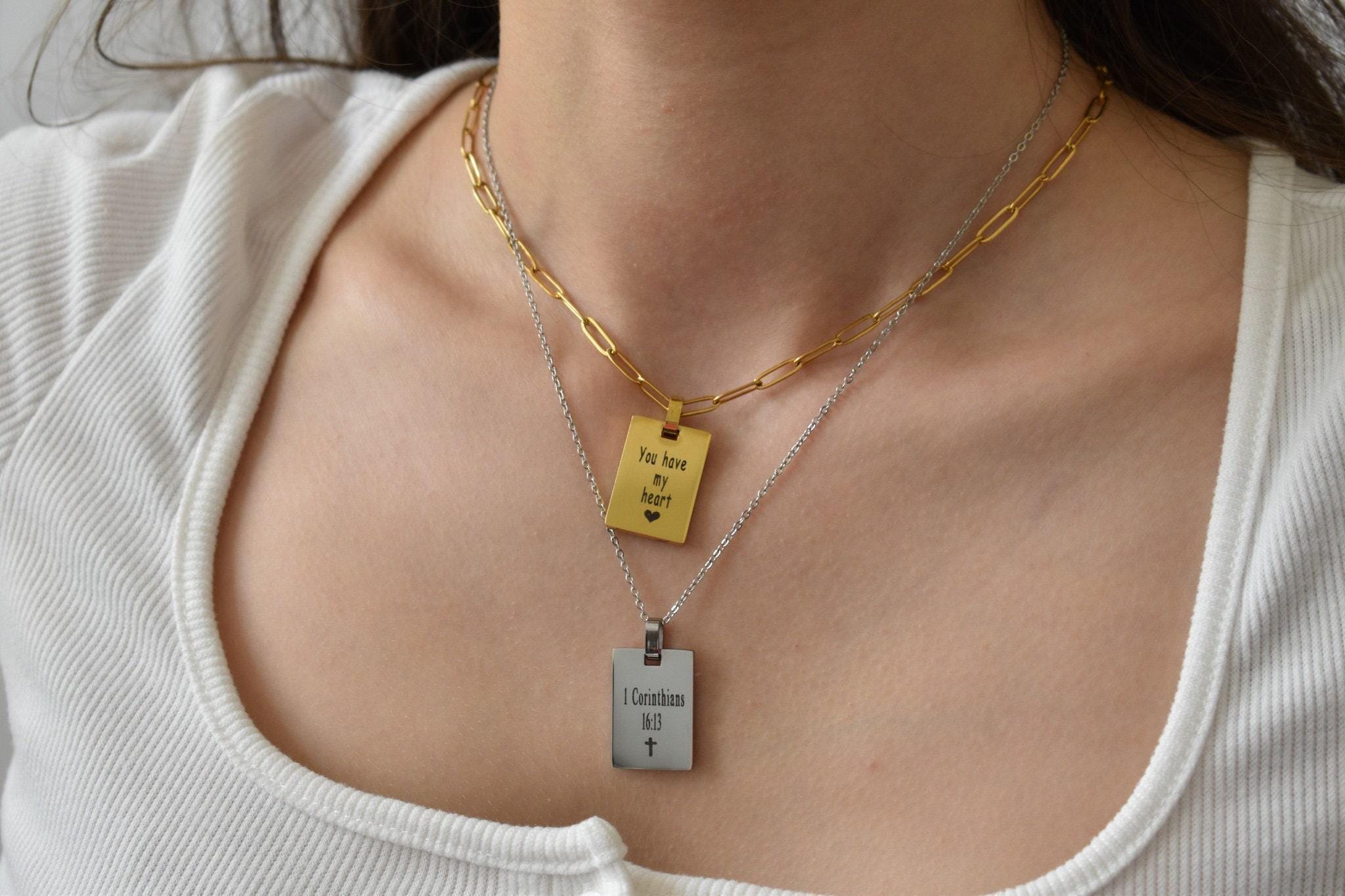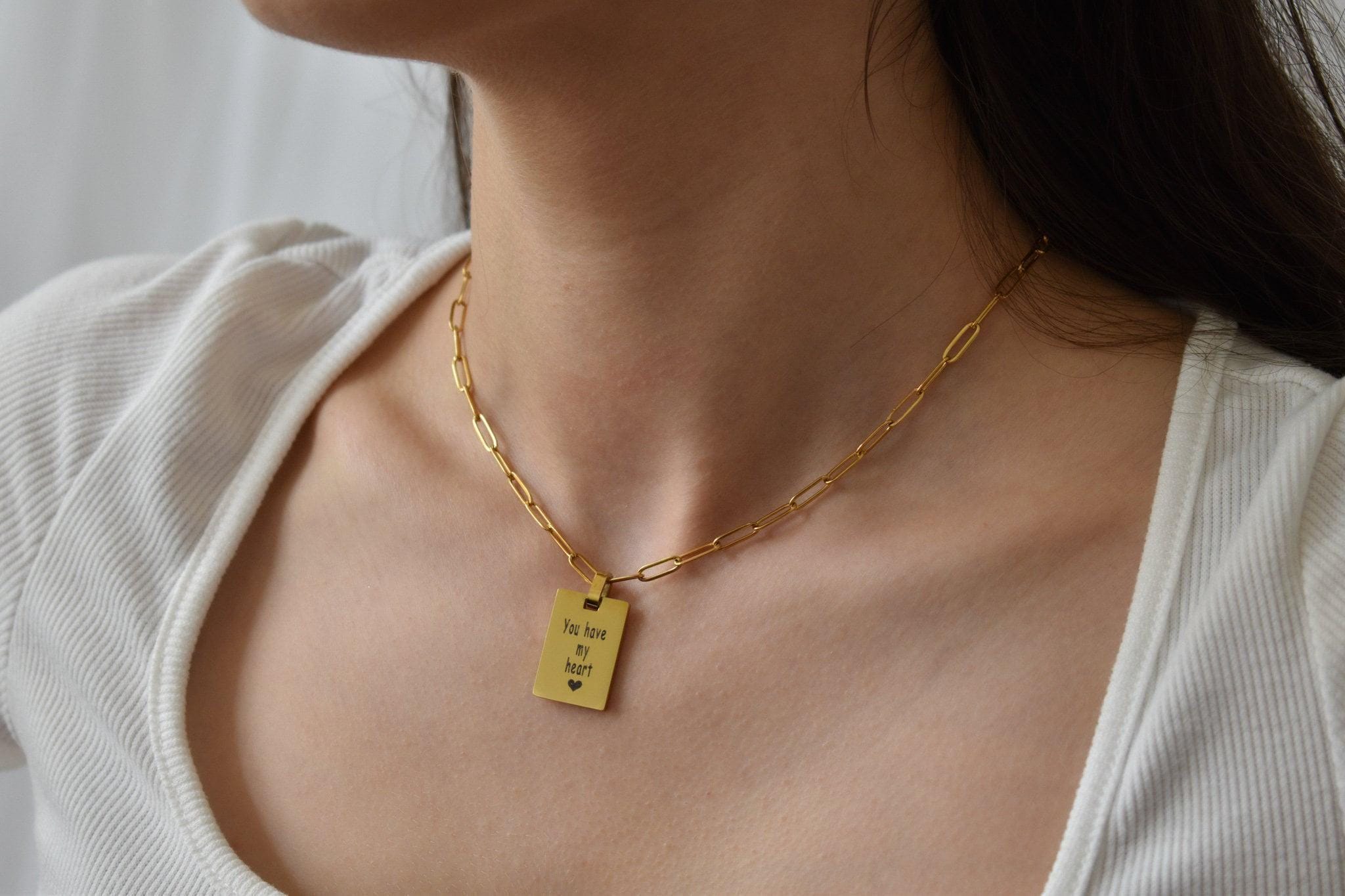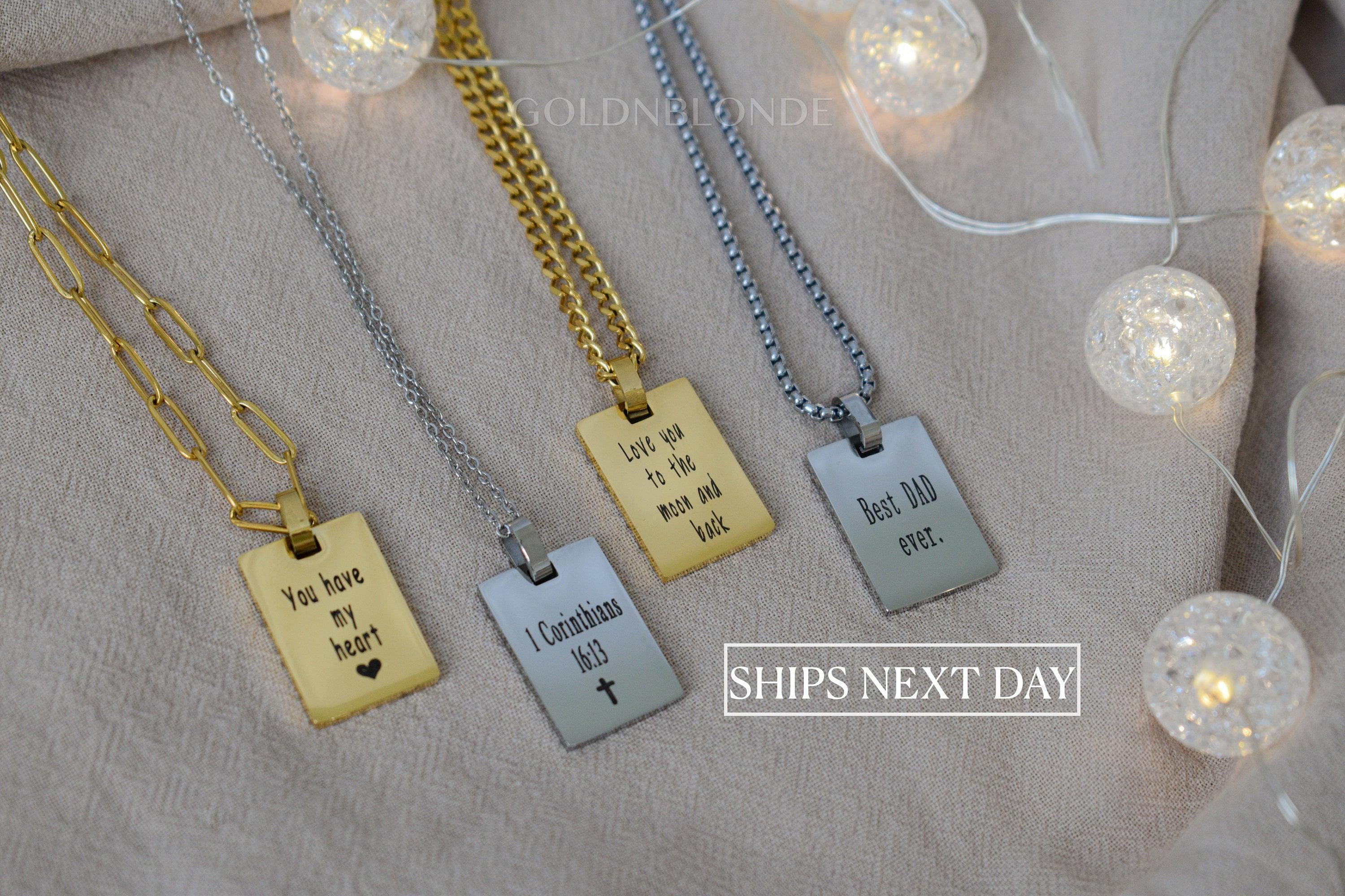 Customized Text Name Pendant Necklace Blank Square Charm Date Love Engraved Customized Personalized Necklace - Dog Pet Cat Tag - Special Message