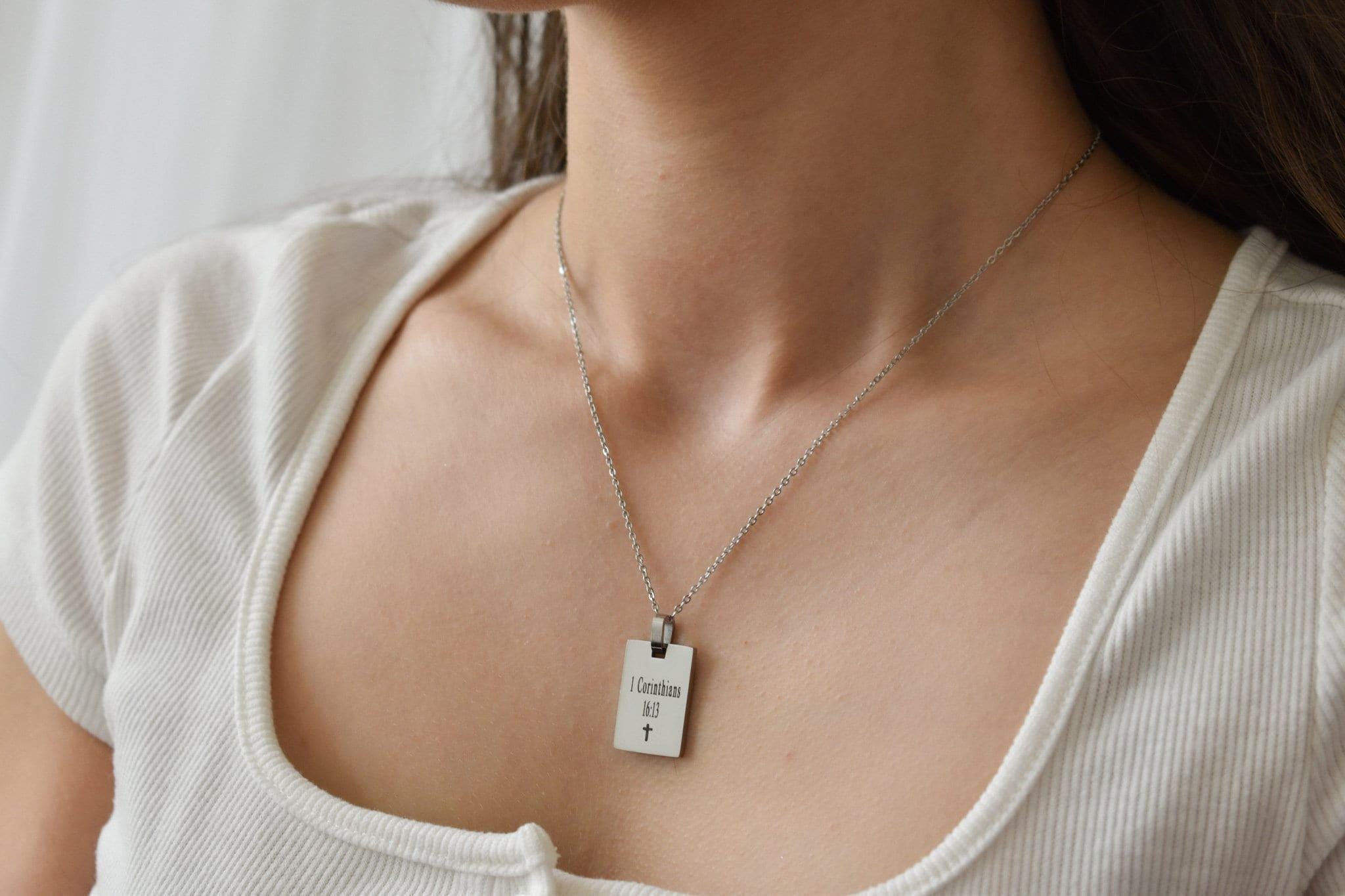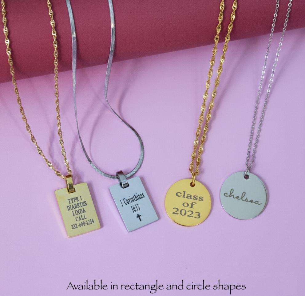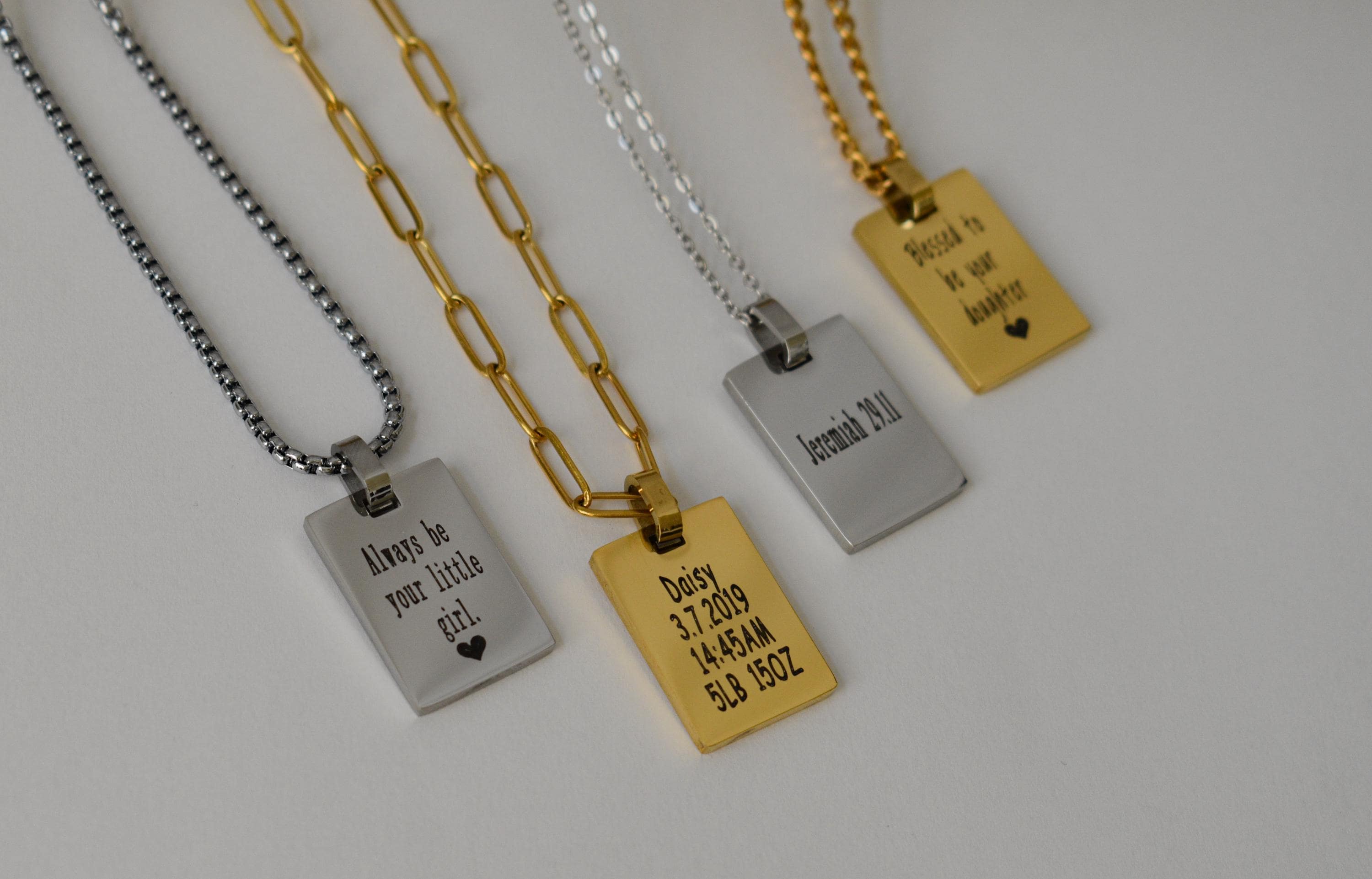 Customized Text Name Pendant Necklace Blank Square Charm Date Love Engraved Customized Personalized Necklace - Dog Pet Cat Tag - Special Message