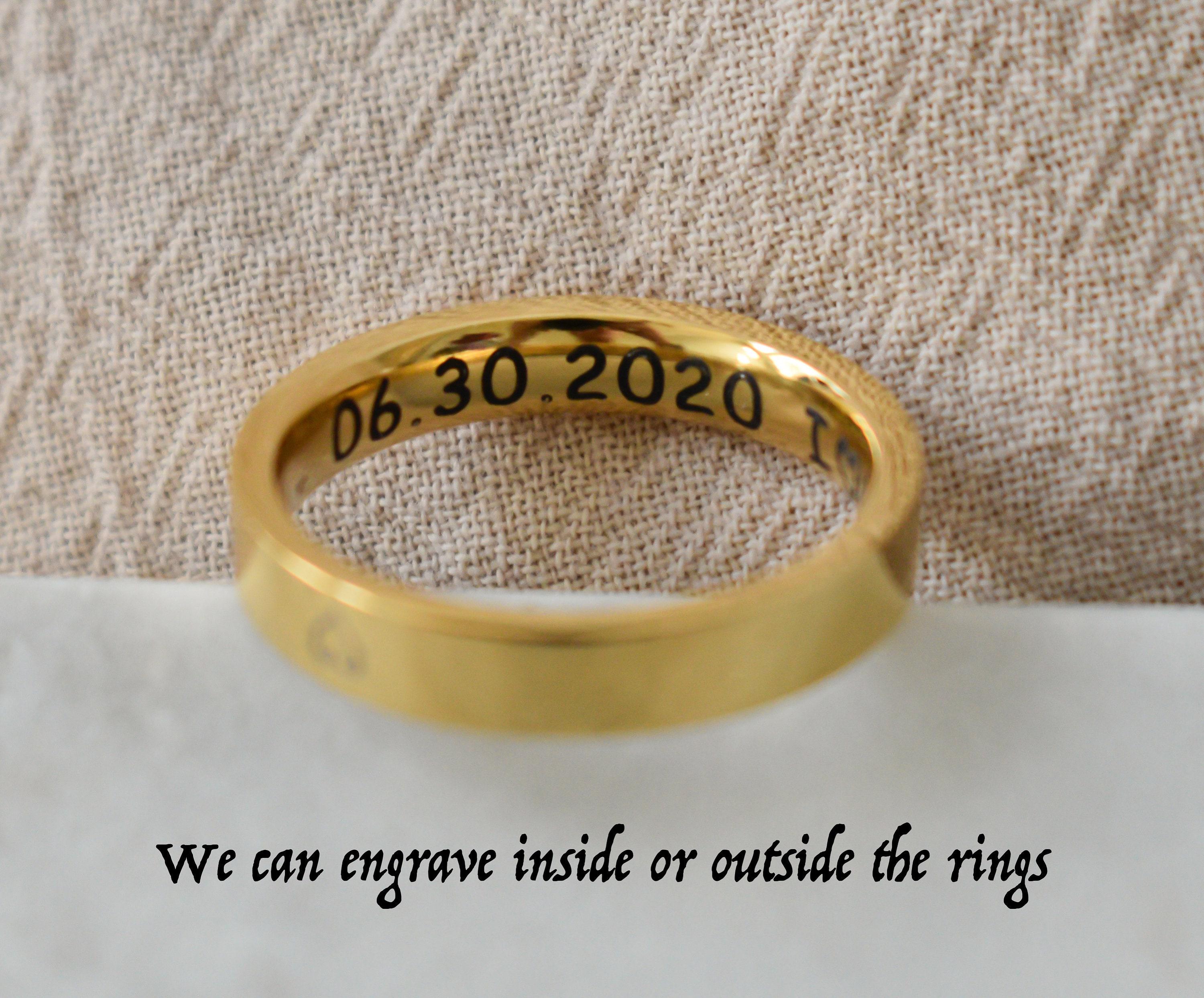 We can laser engrave on the inner or outer side of these ring free of charge but we appreciate a lot for a small tip for the time of our technician.