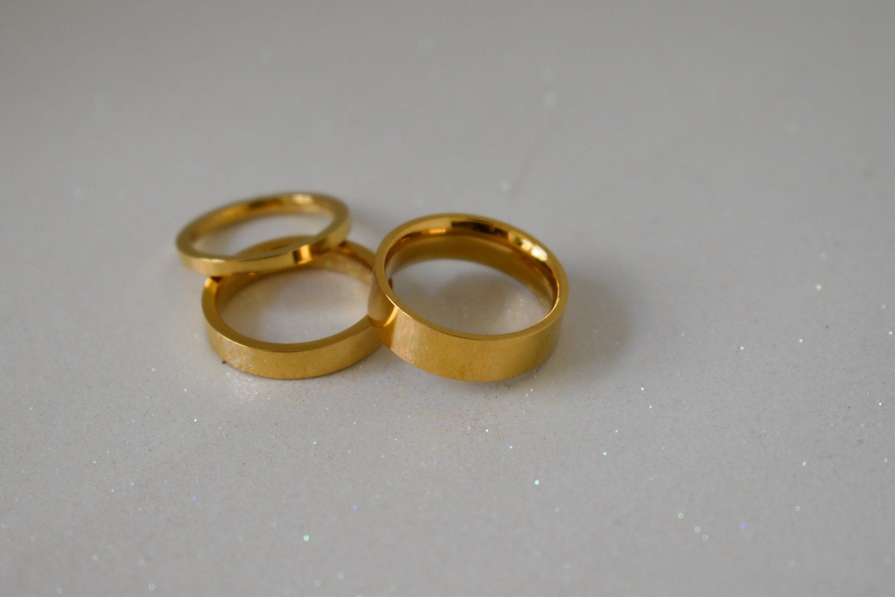 • You will receive a 2mm or 4mm or 6mm wide elegant rings that are available in Gold filled and Silver finishes.