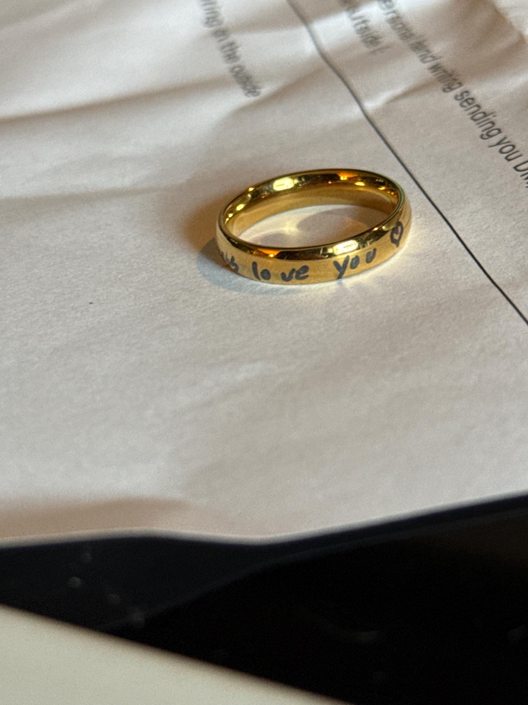 My ring came in today & it’s so cute! I’m very happy, I got my husband’s hand writing engraved because my wedding band became too big for my fingers and it was faded. This feels just as special.