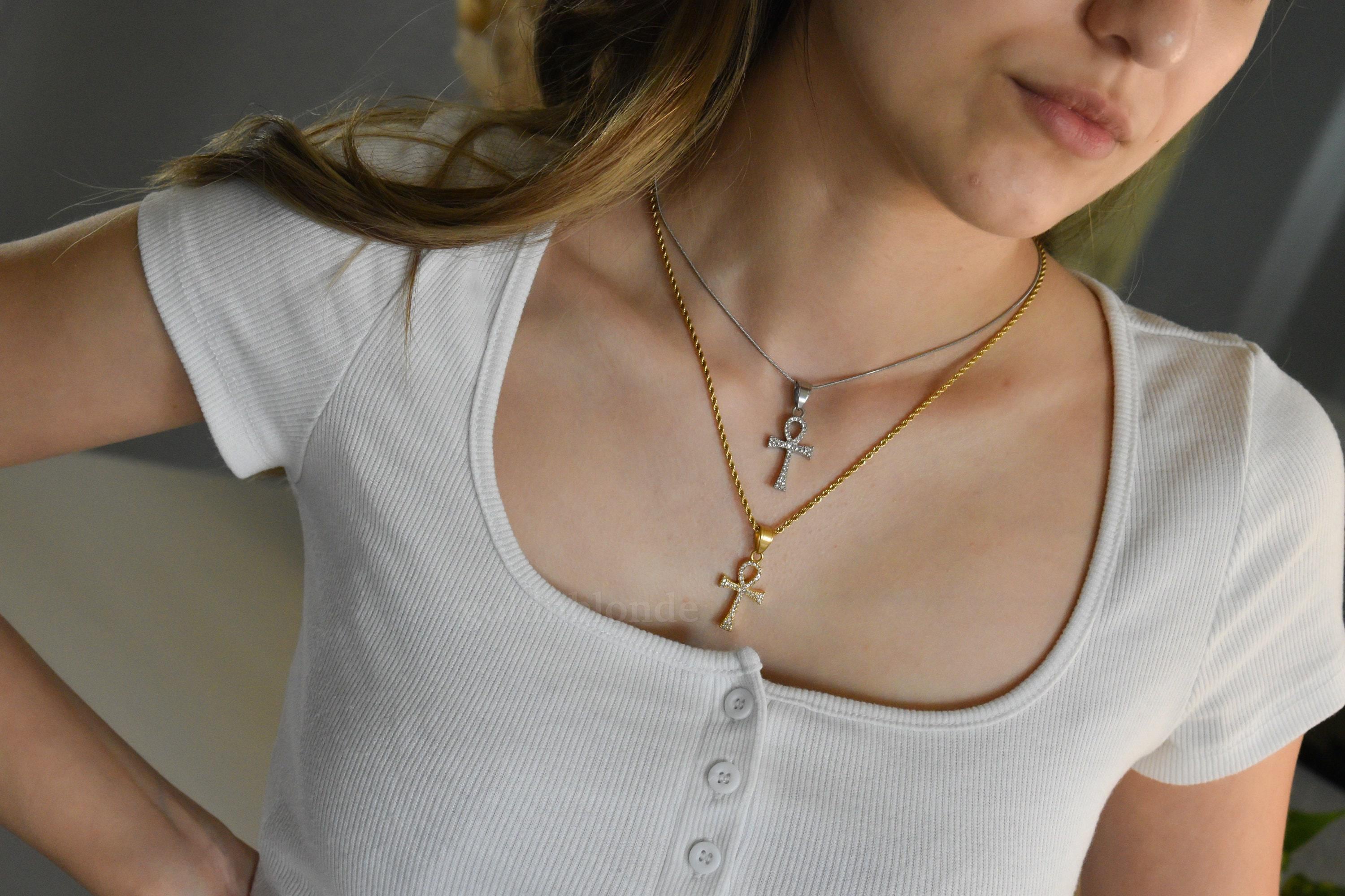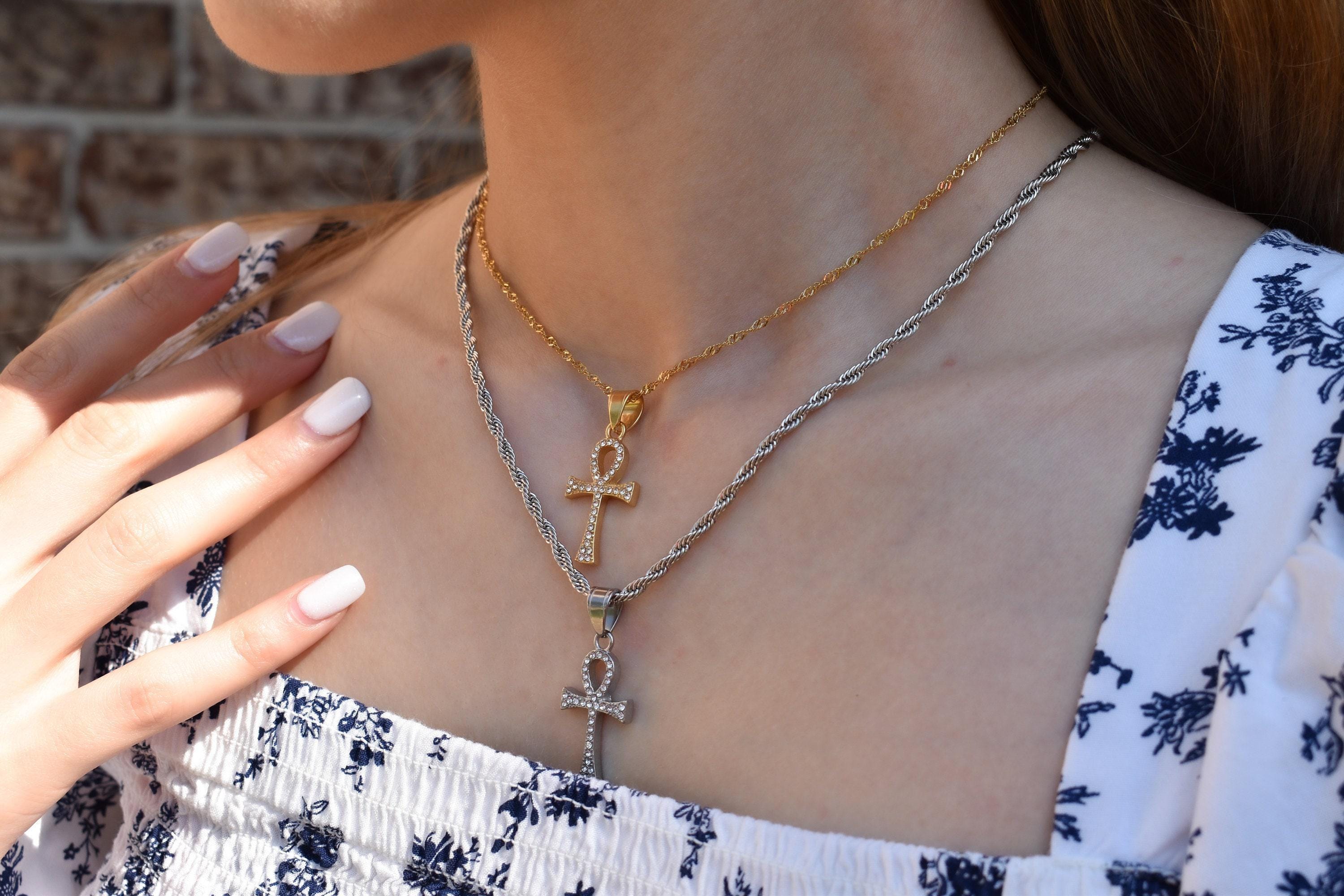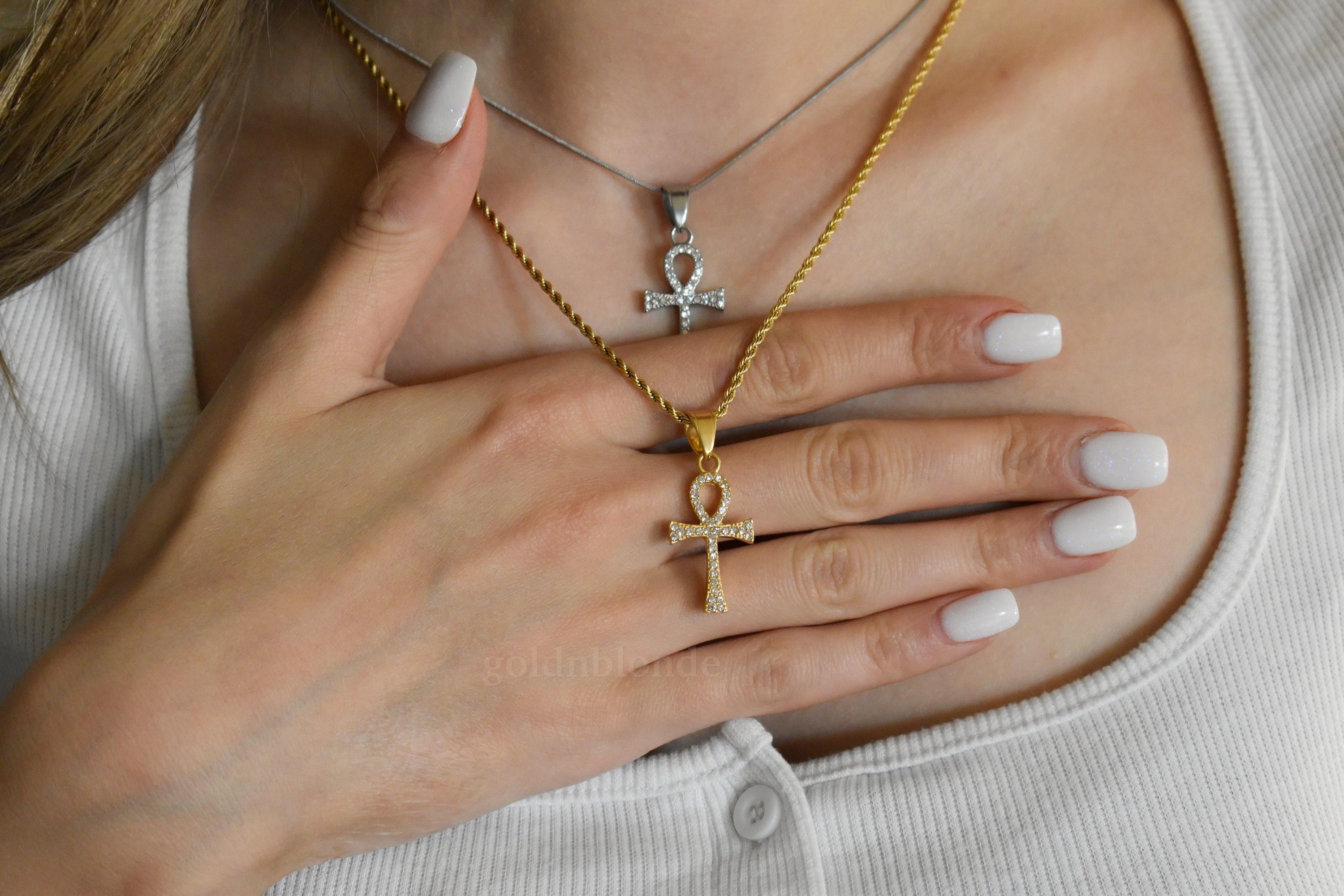 ✨Ankh Necklace Gold Cross, Silver Cross Necklace, Mens Women Kids Cross Necklace, GOLD FILLED WATERPROOF ANTI TARNISH JEWELRY ✨