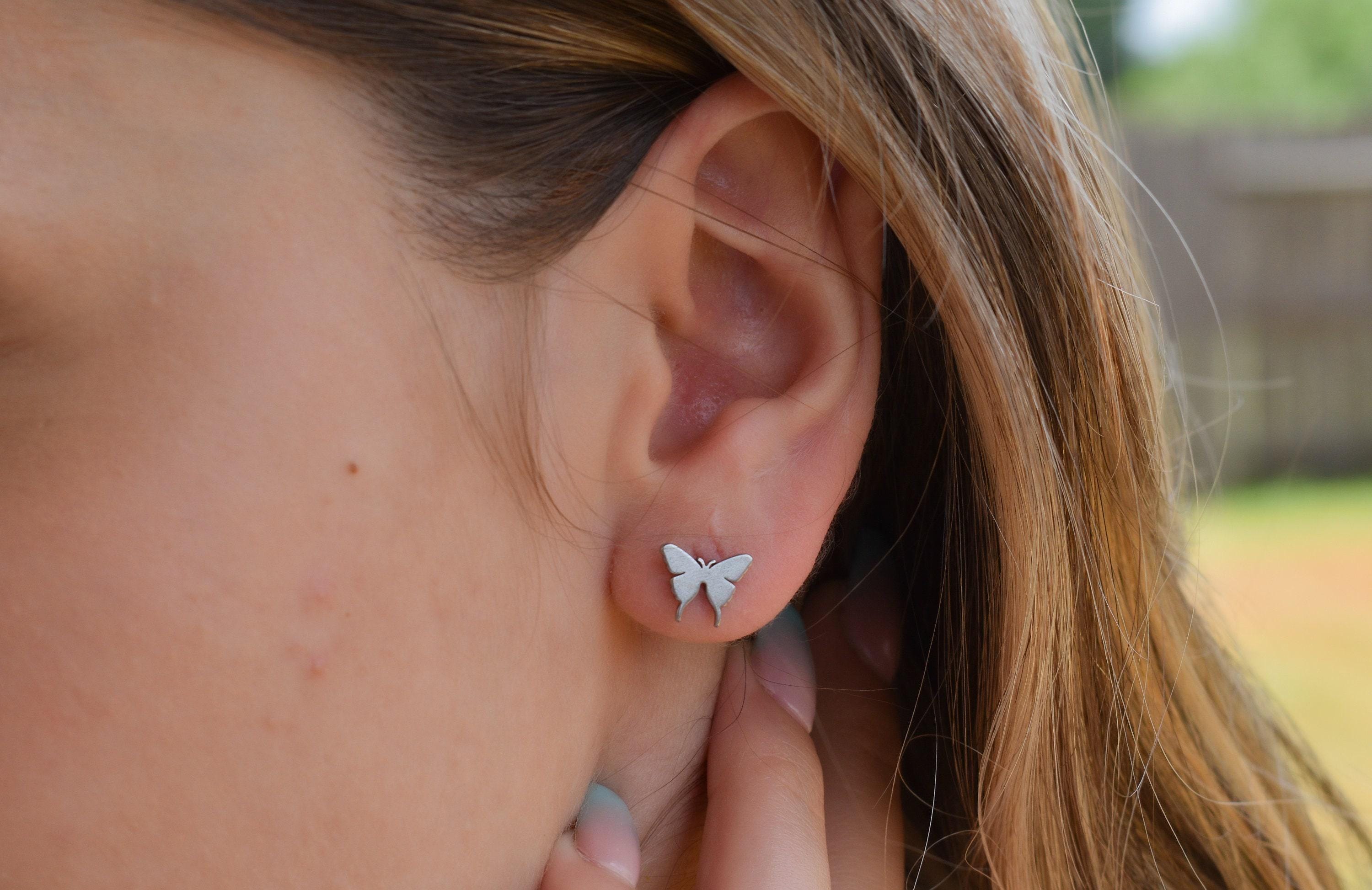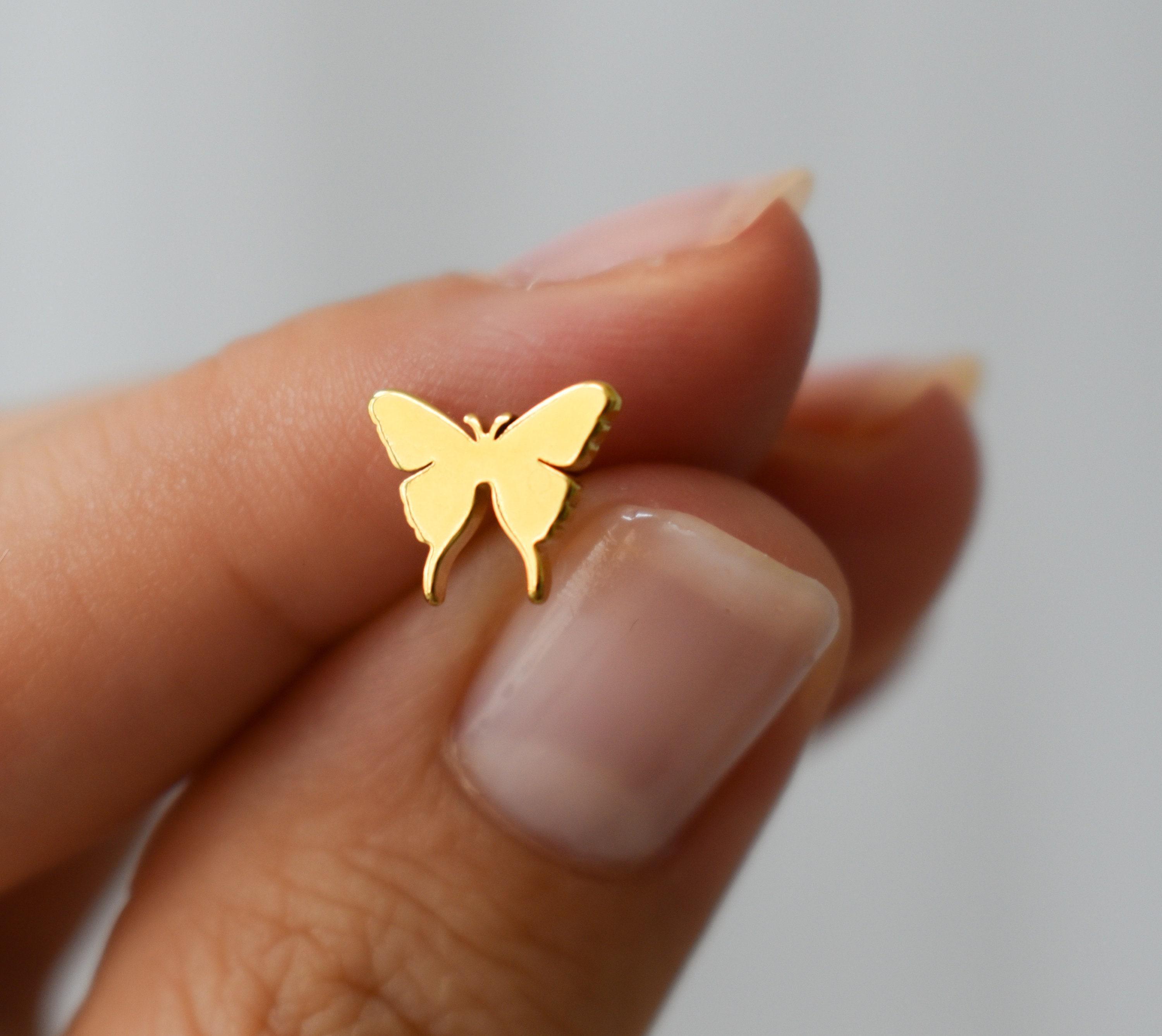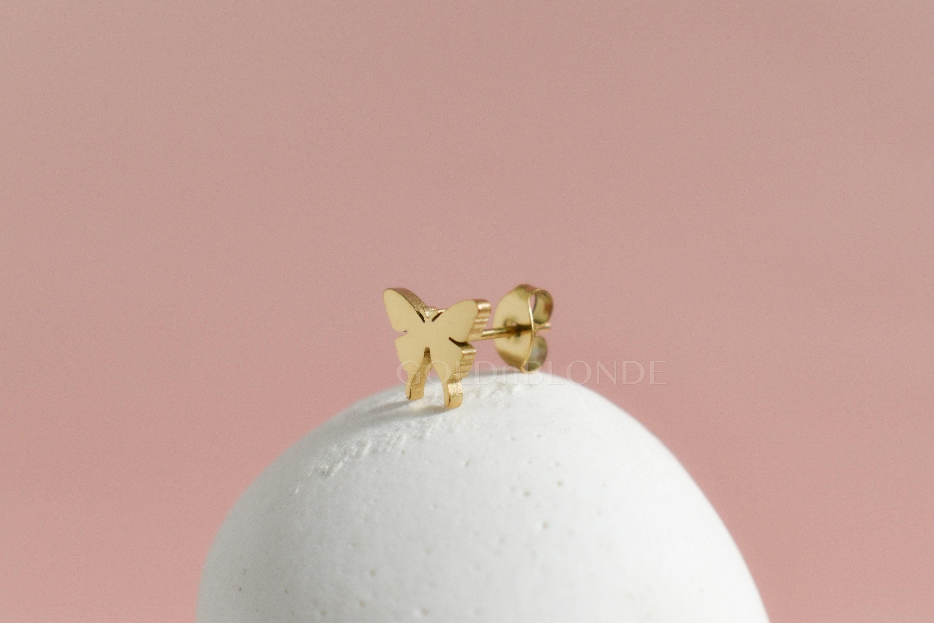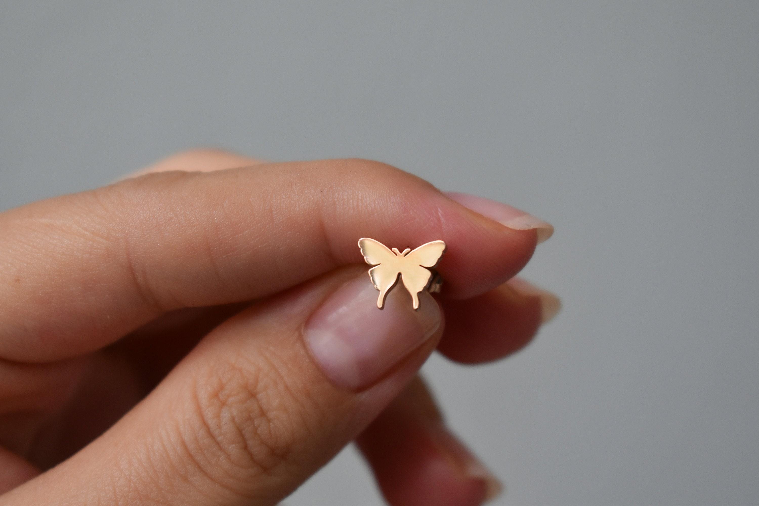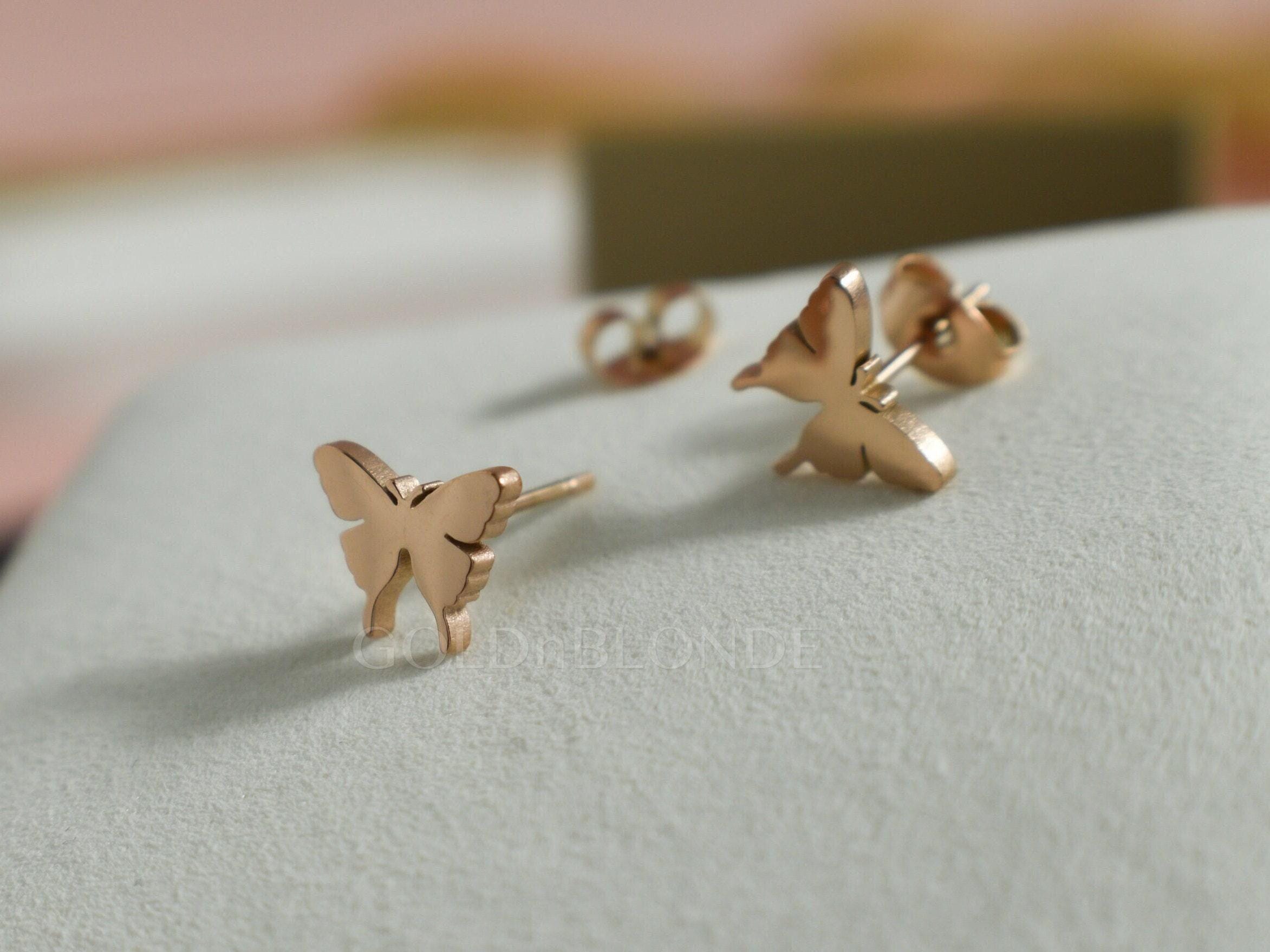 Rose Gold Stud Earrings Butterfly Studs Gold Filled Silver Stud Earrings Daily Everyday WATERPROOF Women Jewelry Everyday Dainty Small Minimalist Earrings