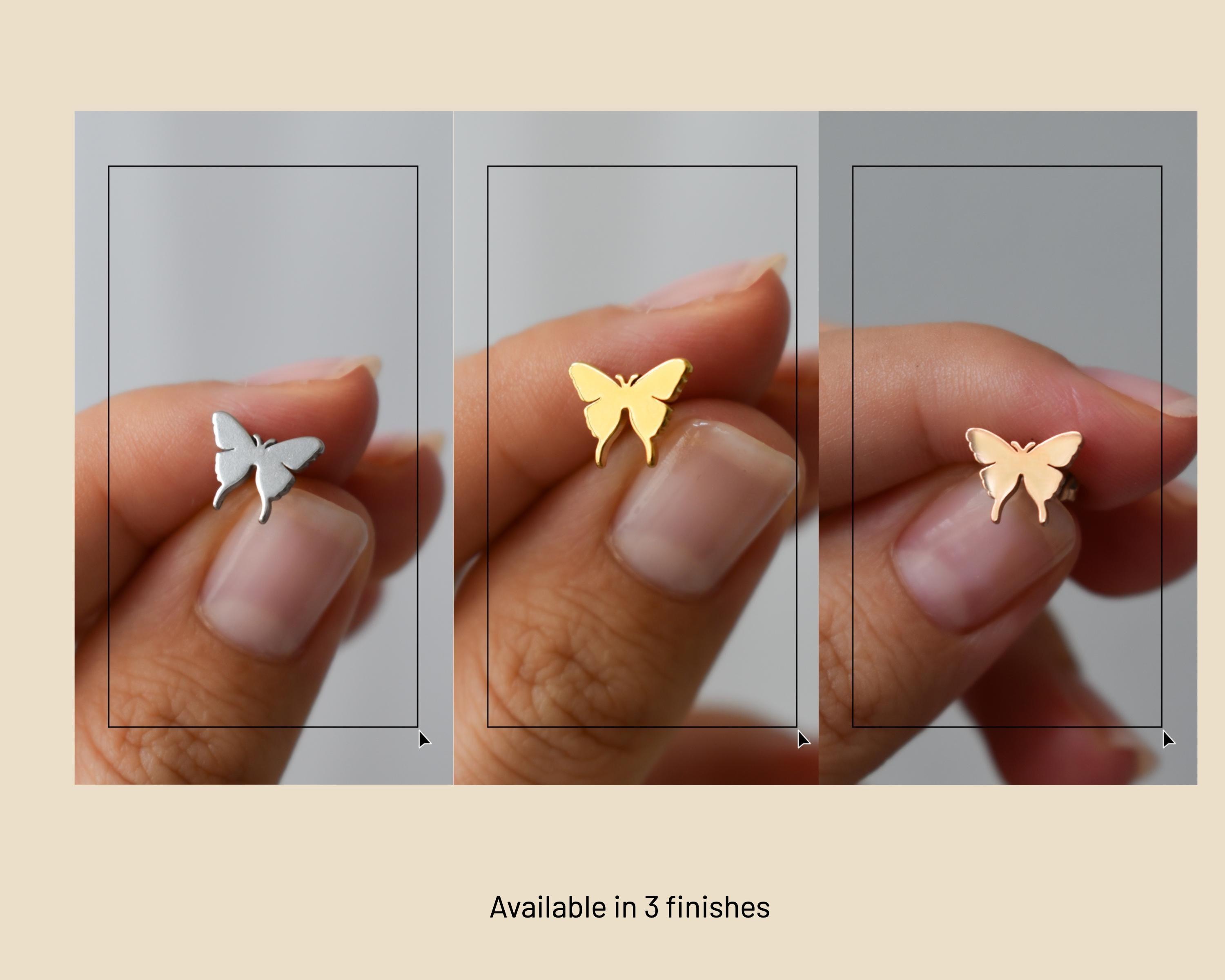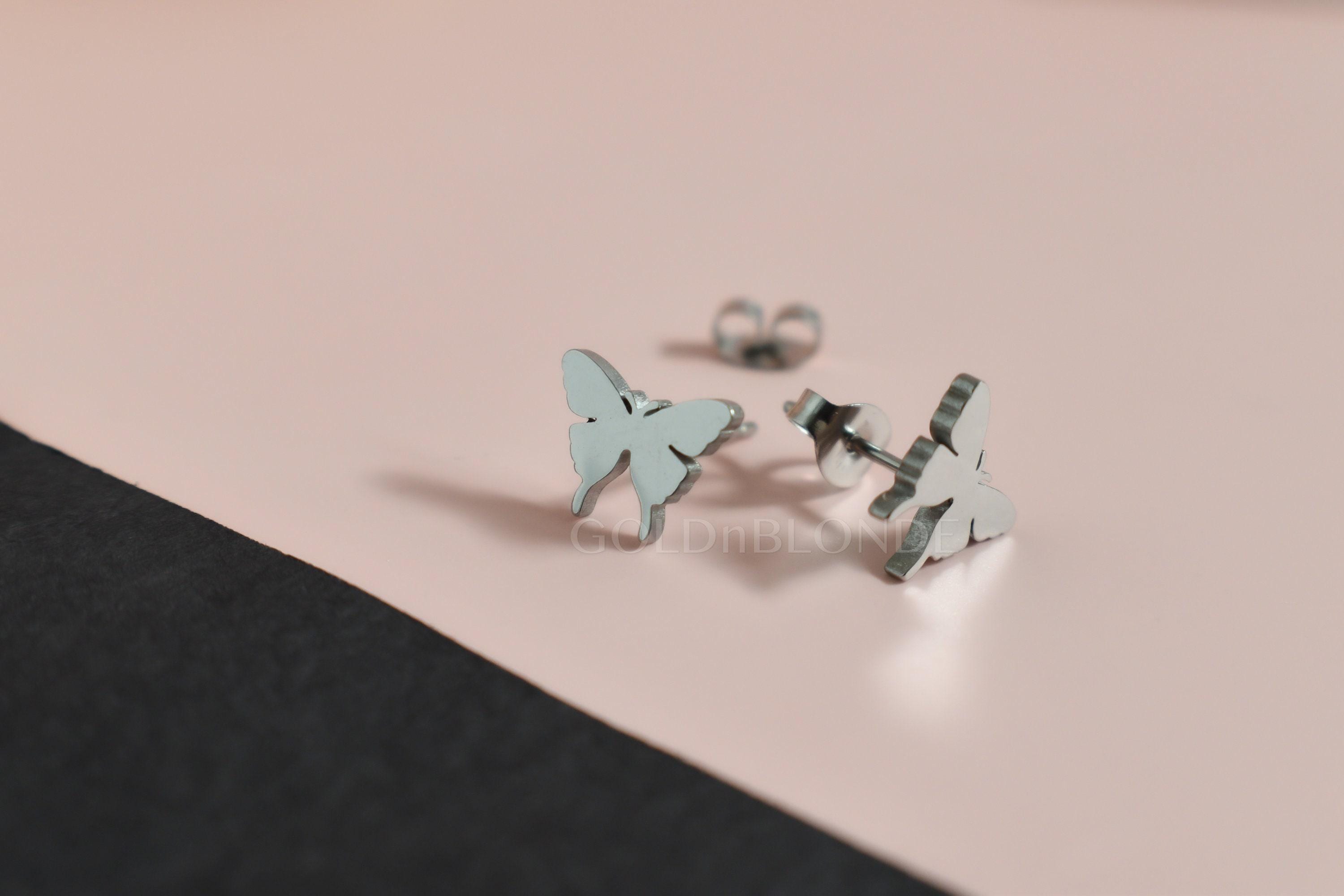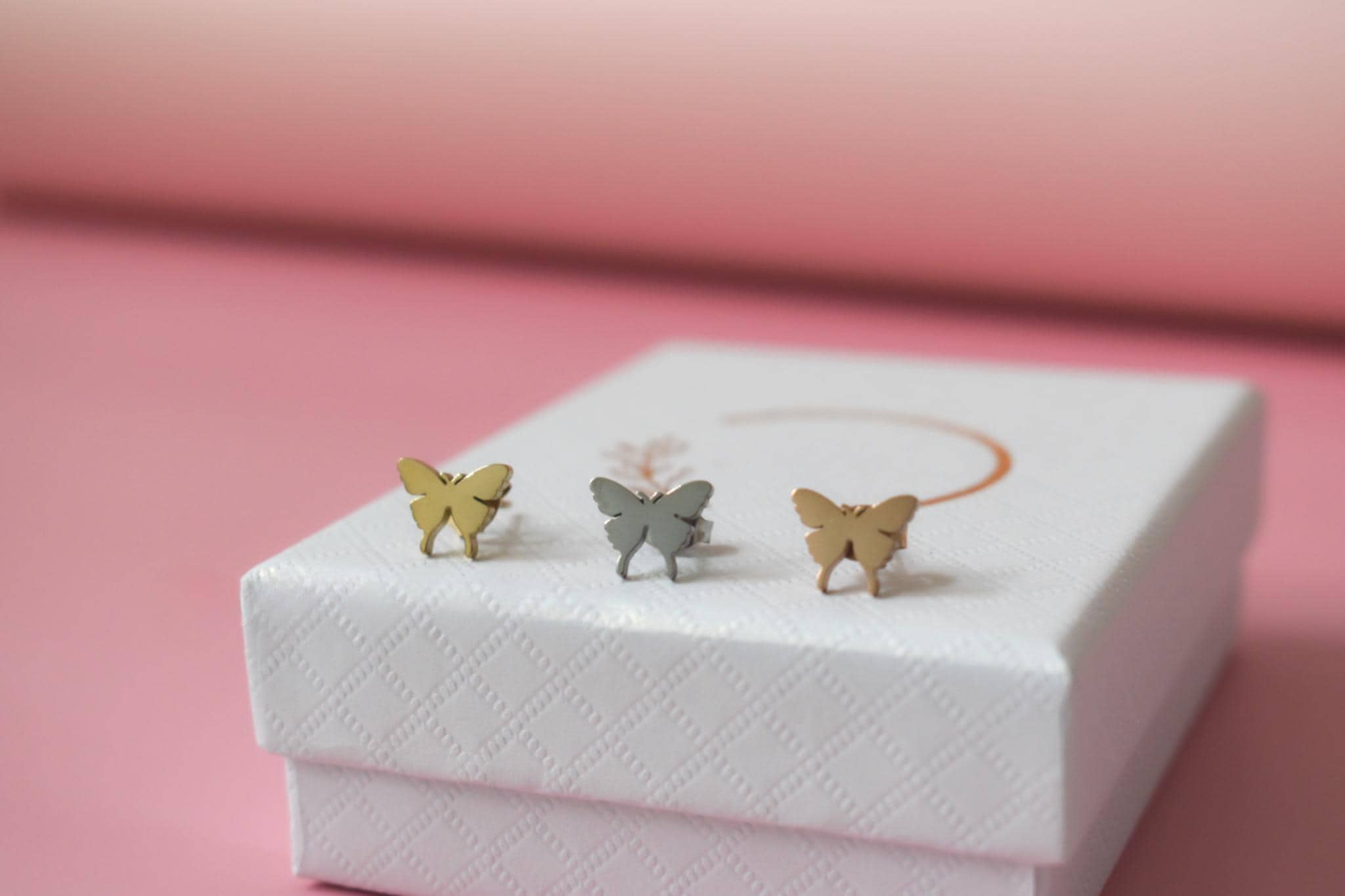 🦋You will receive a pair of butterfly shaped stud earrings made with rose gold or 18k gold filled or silver over stainless steel.