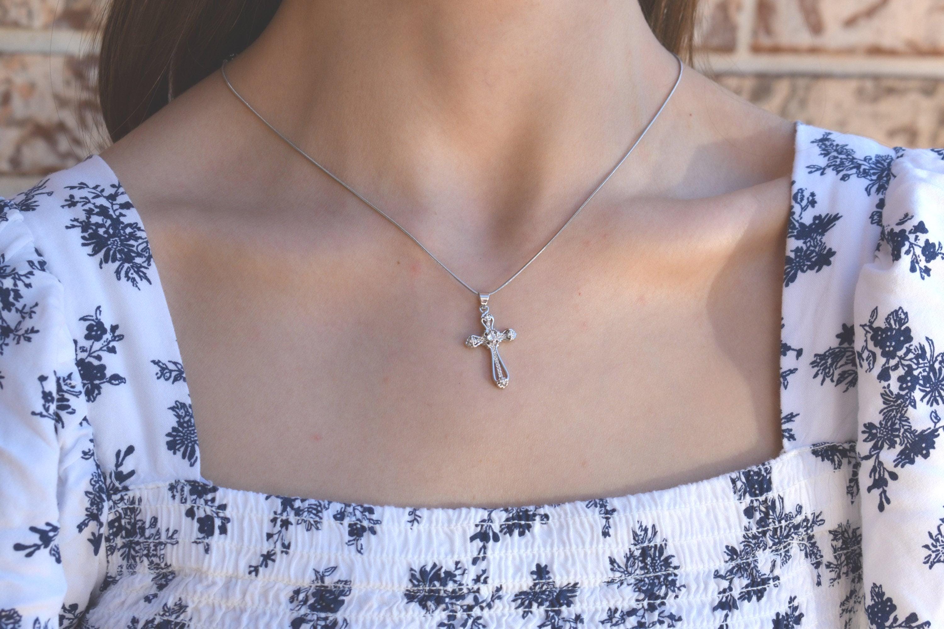 Silver cross necklace, silver chain necklace, men cross necklace, women cross necklace, kids cross necklace, waterproof non tarnish necklace, Jesus Pray Necklace✨