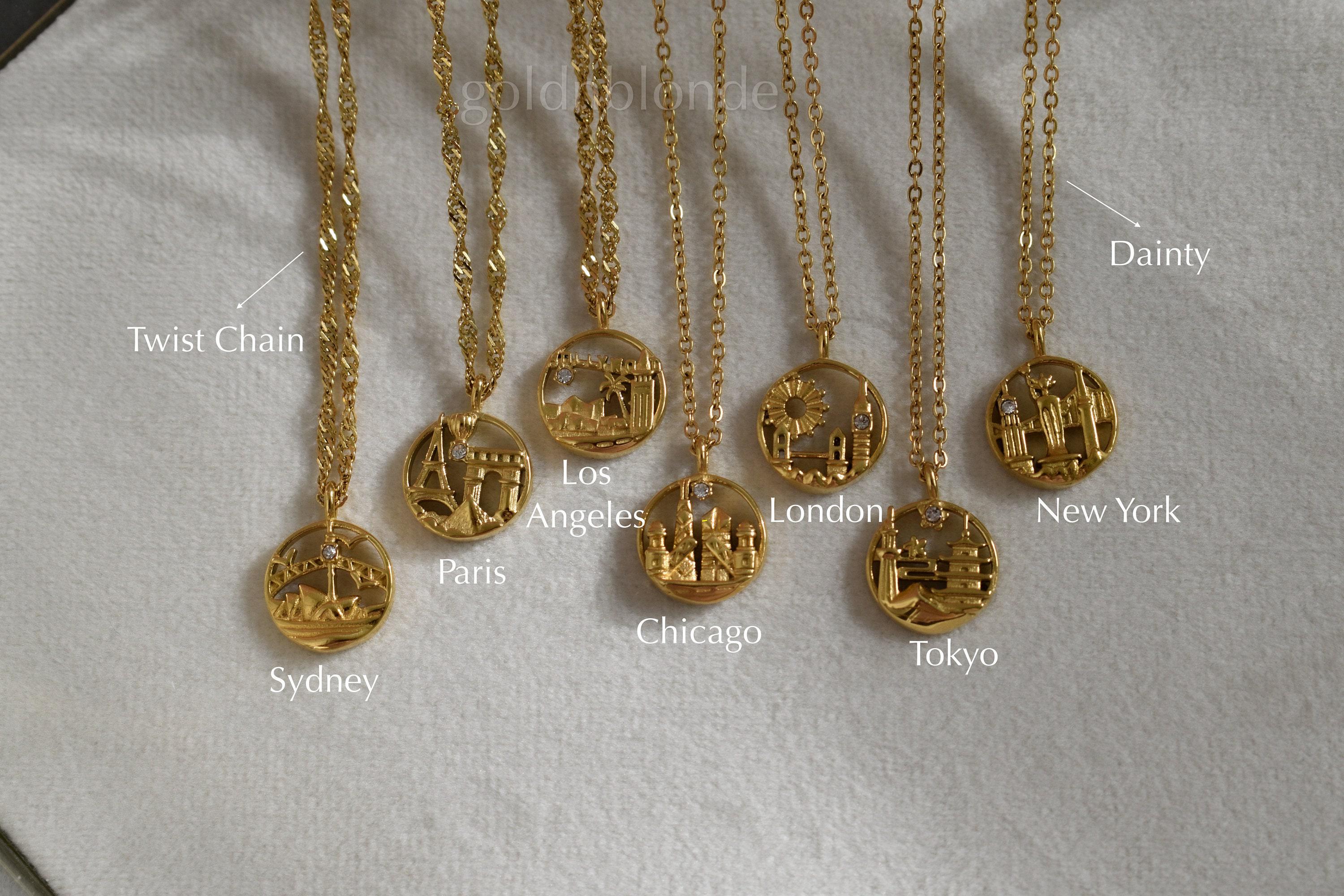 GOLD FILLED CITY NECKLACE LONDON PARIS LOS ANGELES NEW YORK CHICAGO TOKYO SYDNEY WATERPROOF NECKLACE ✨