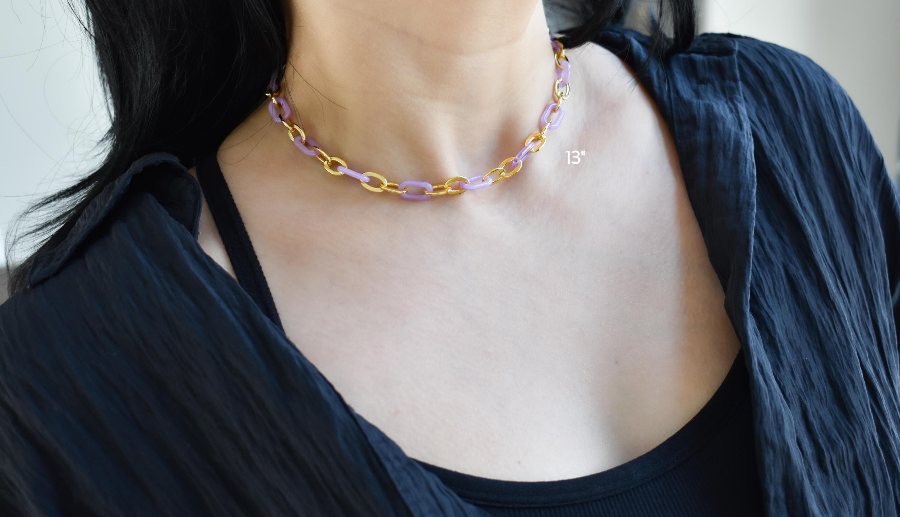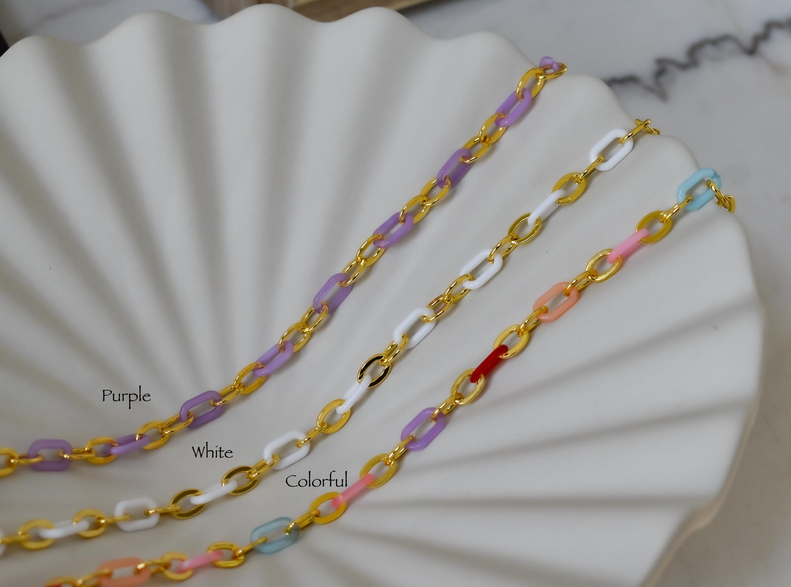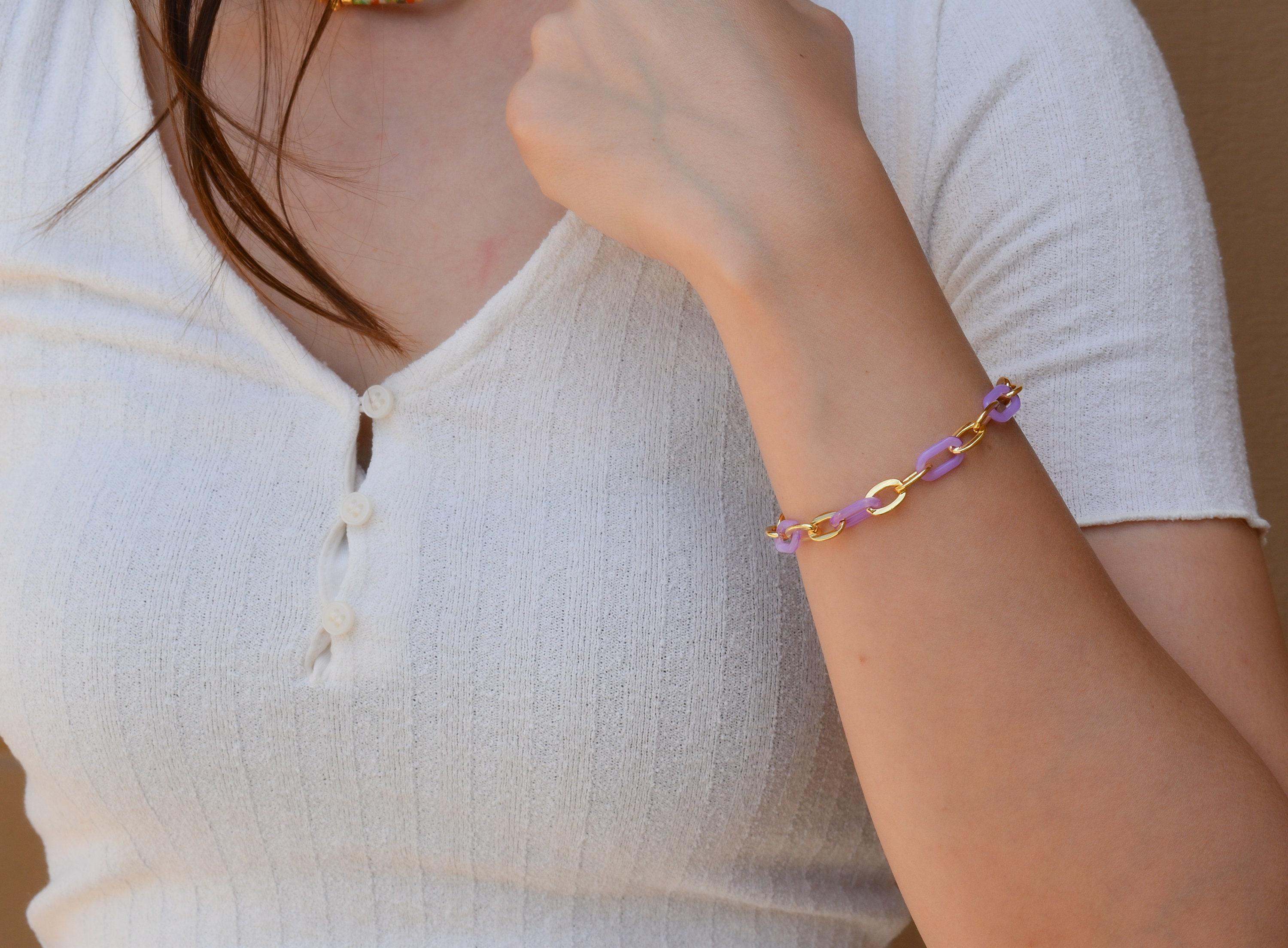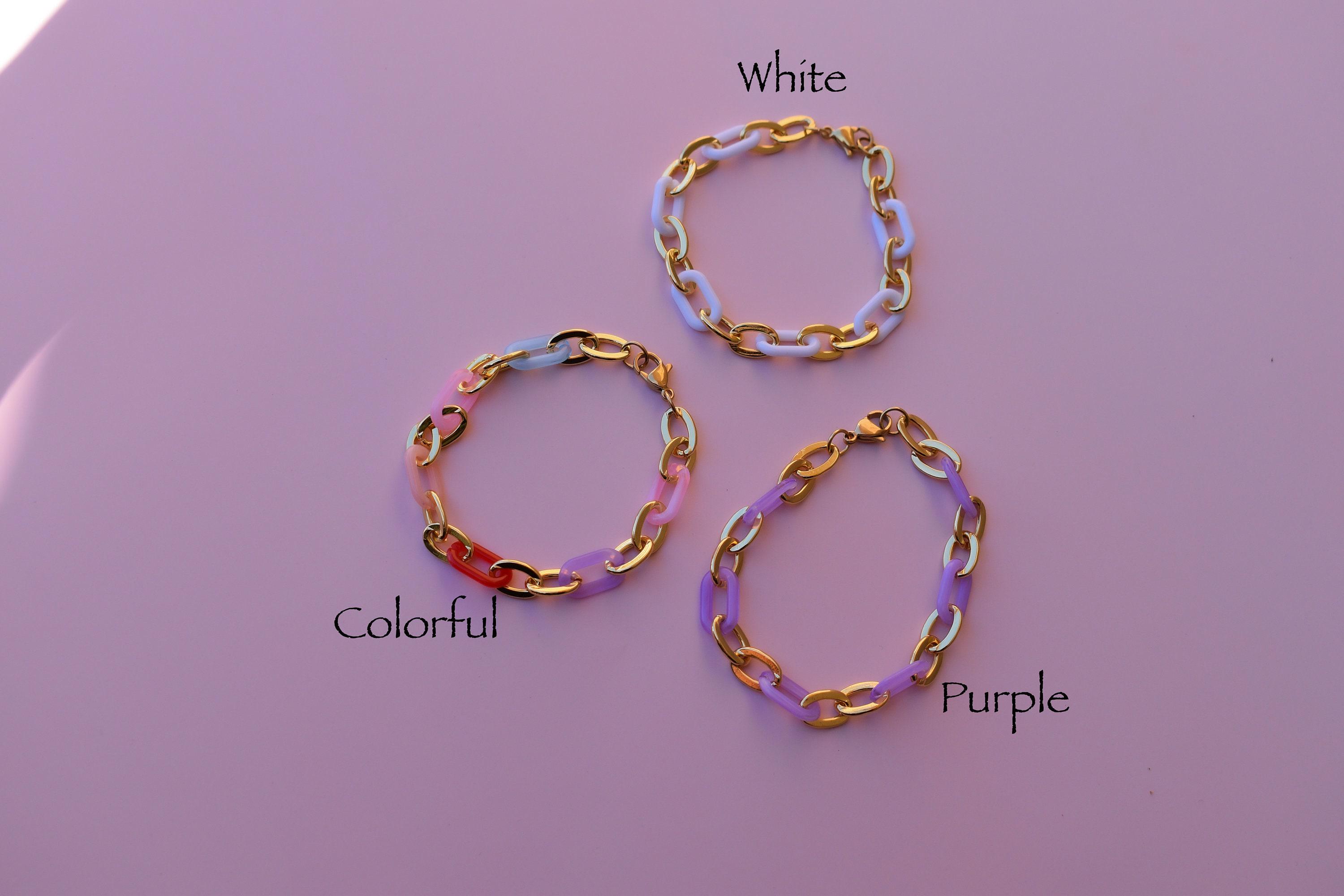 Link Chain Bracelet, Friendship Bracelet, Purple White Enamel Colorful Bracelet, Boho Bracelet, Summer Jewelry WATERPROOF