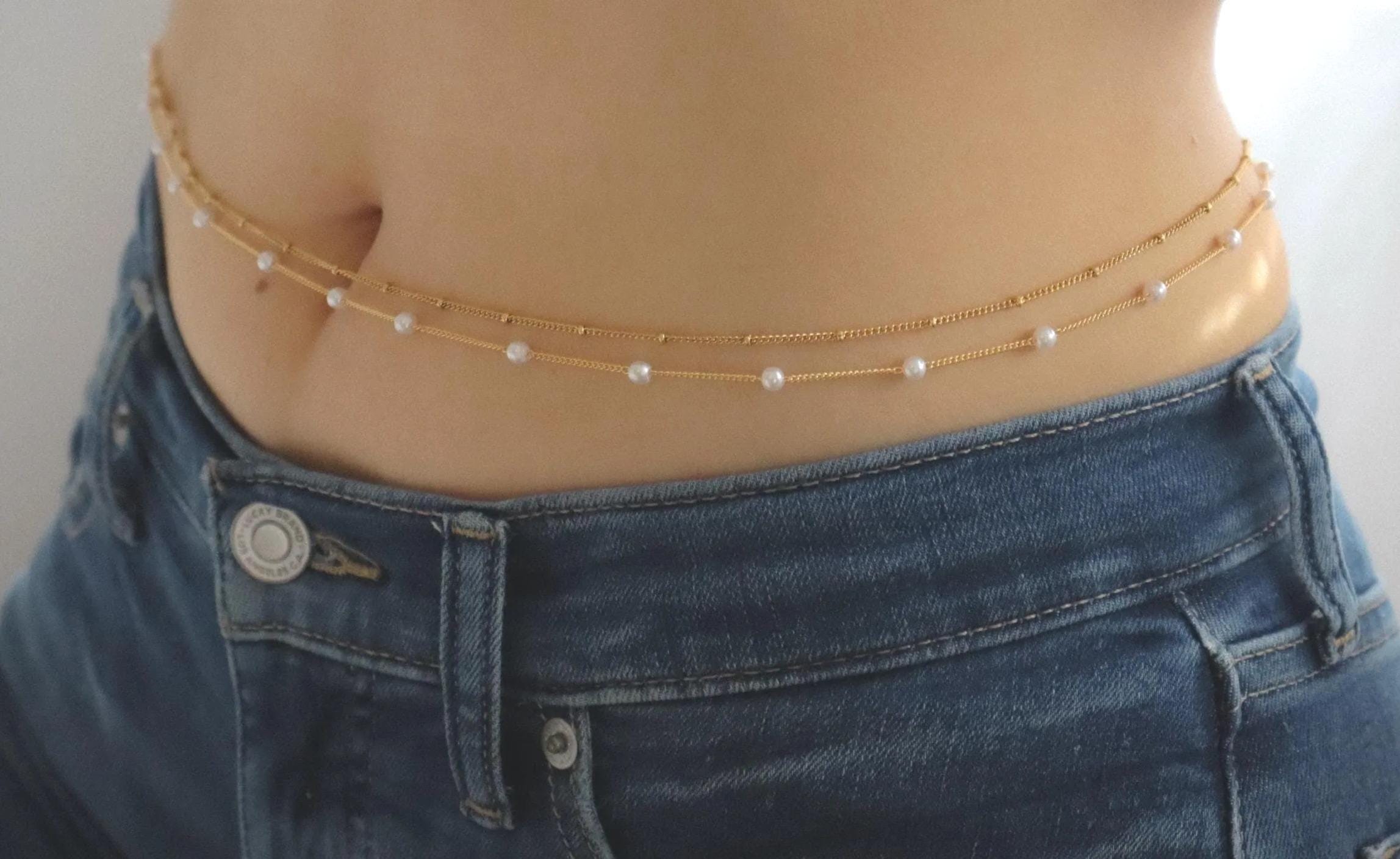 18K Gold WATERPROOF Waist Belly Chain Jewelry Summer Pool Bikini Body Chain Gold Belly Chain Sexy Swimwear Waist Chain Non Tarnish Jewelry