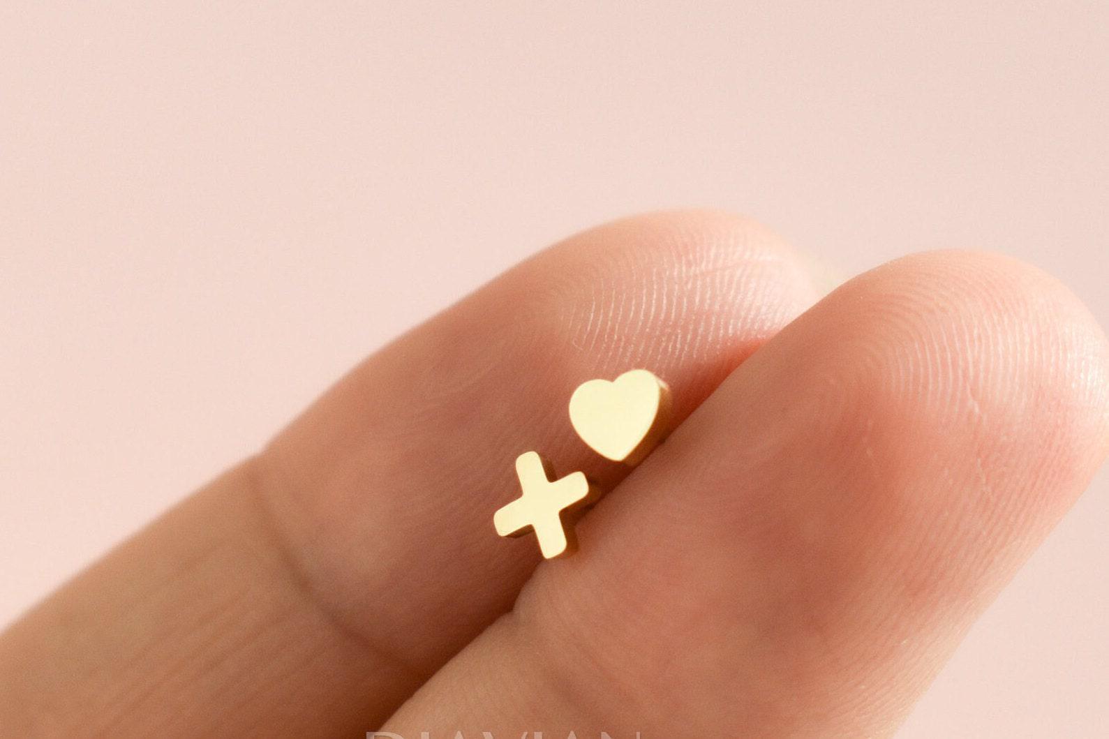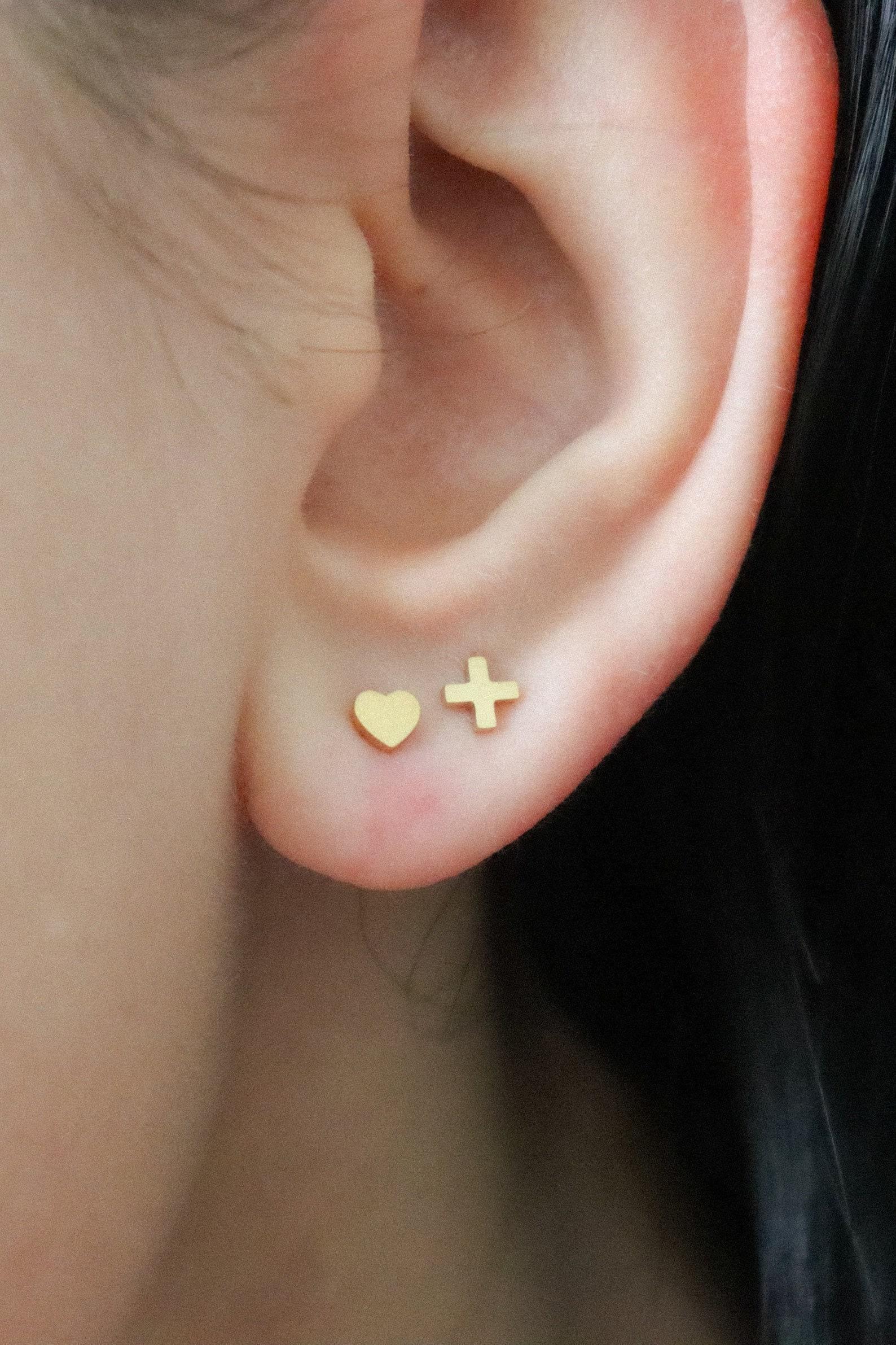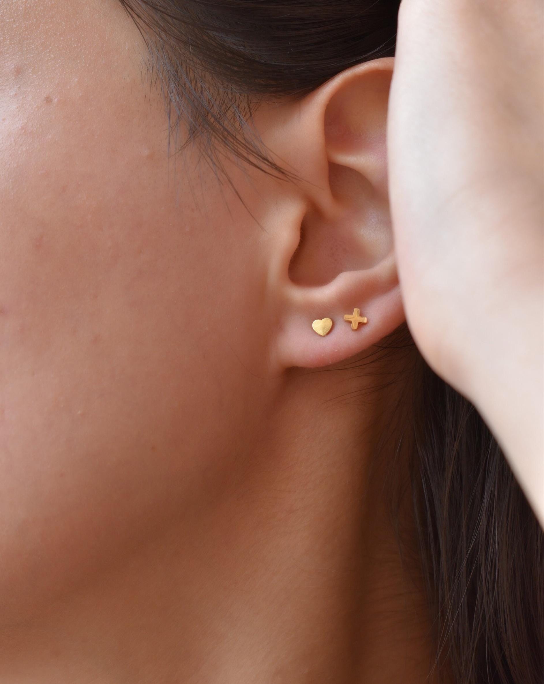 🔸 You will receive a pair of stud earrings either plus(cross) or heart shape.