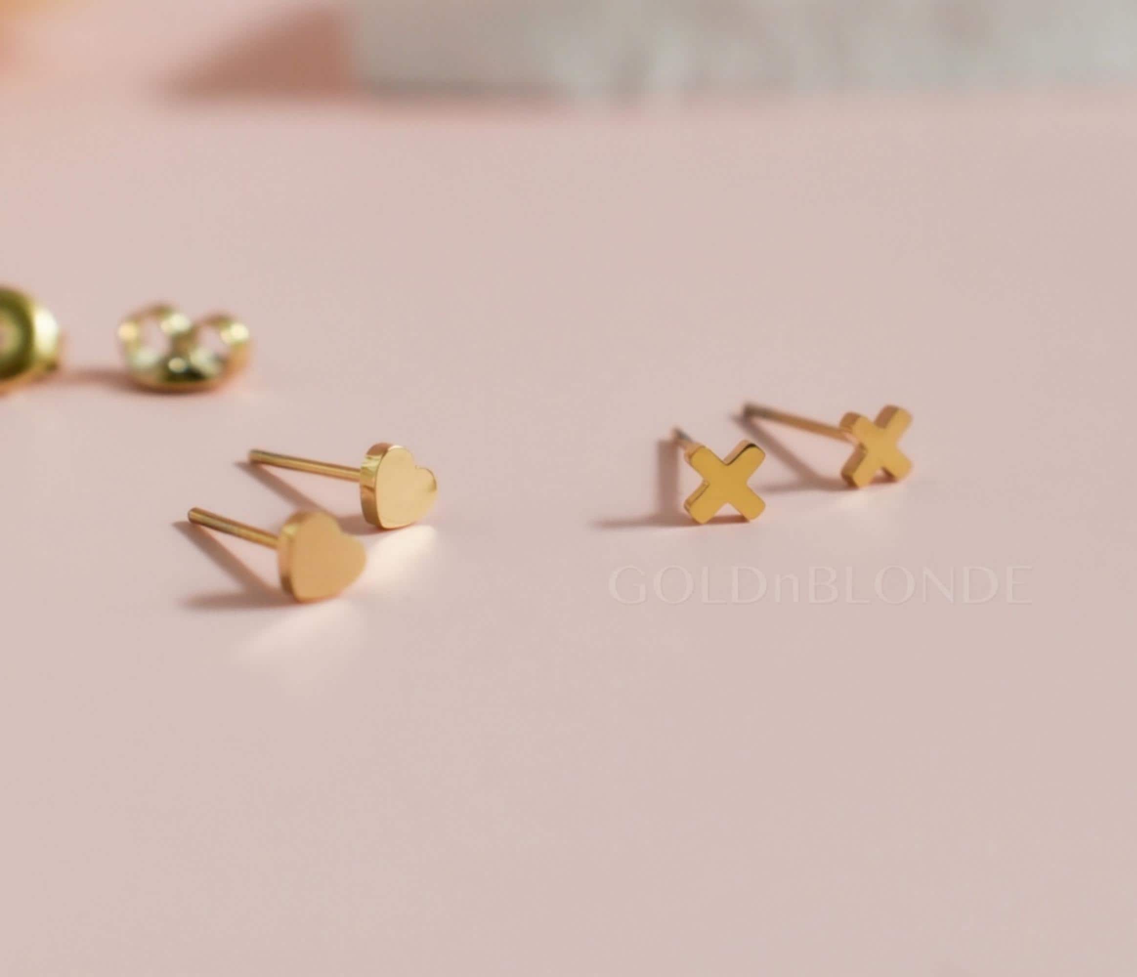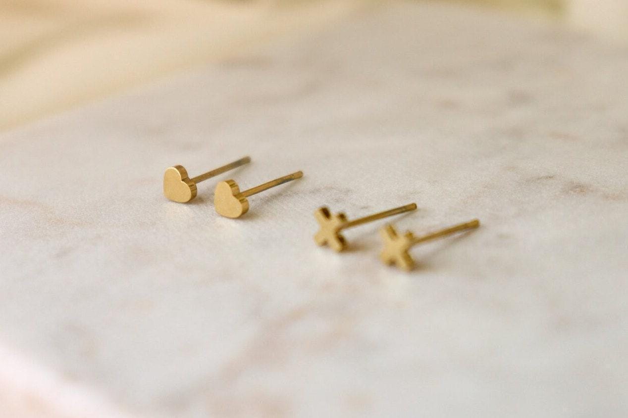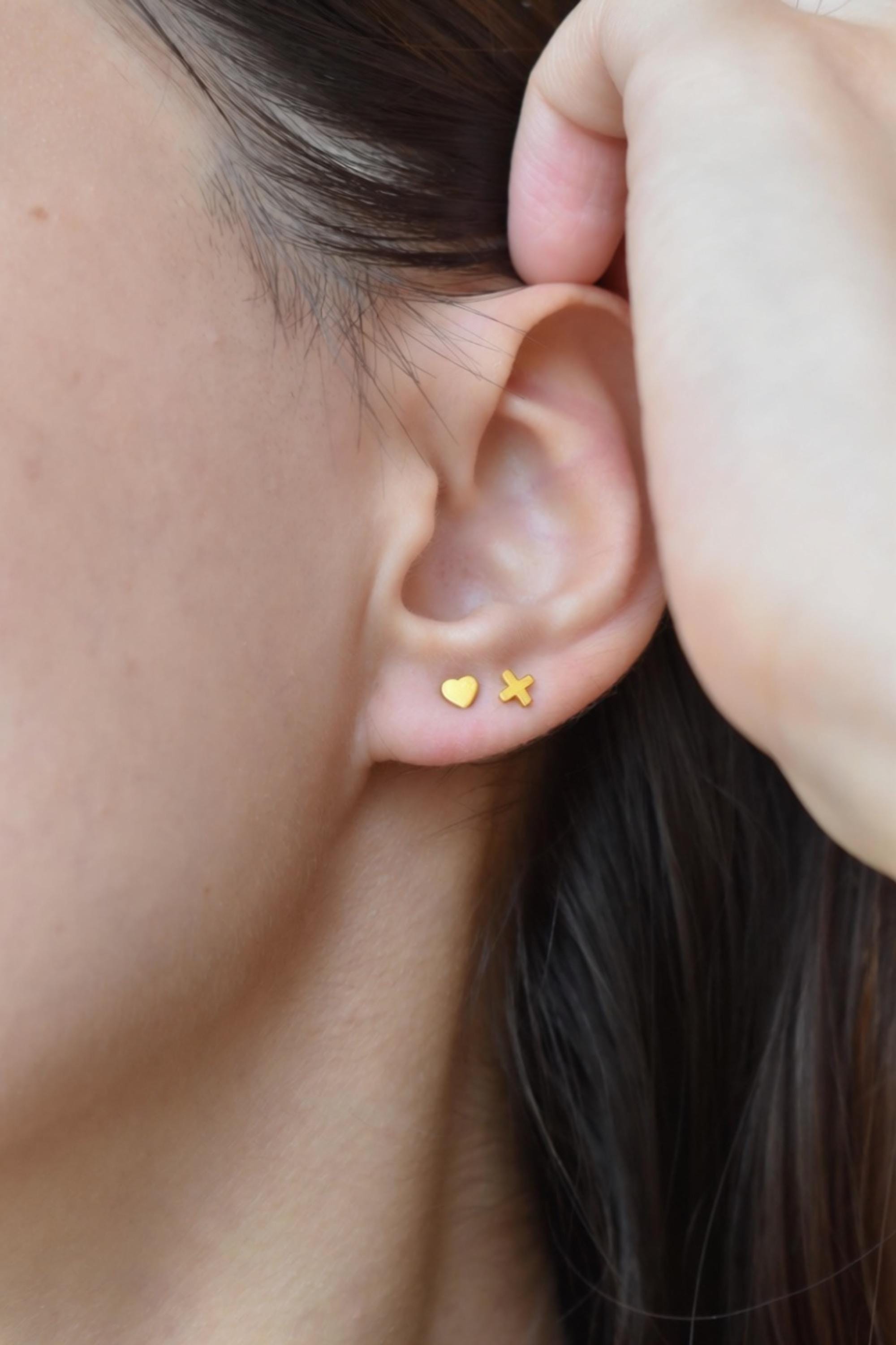 🔸 You will receive a pair of stud earrings either plus(cross) or heart shape.
