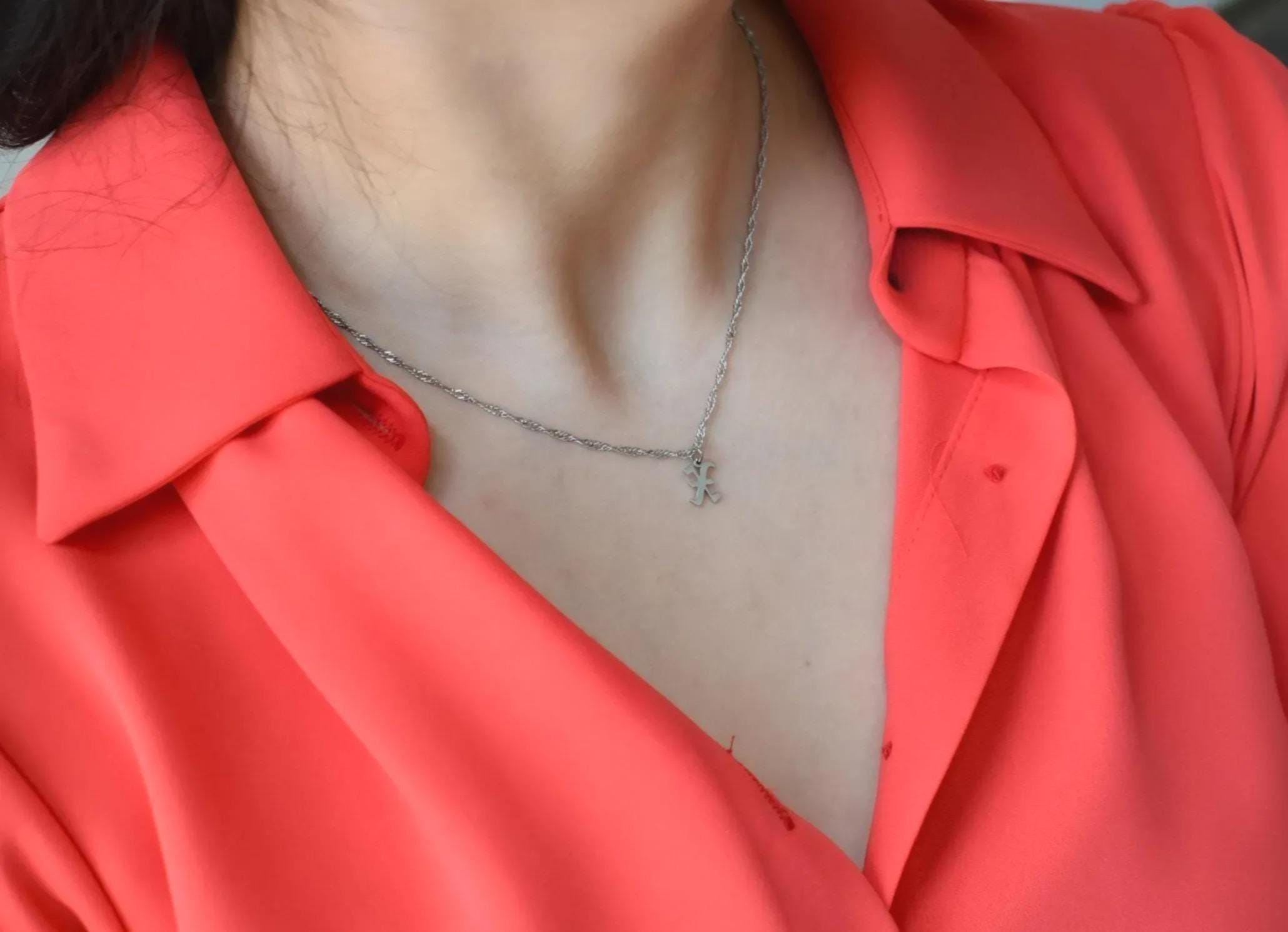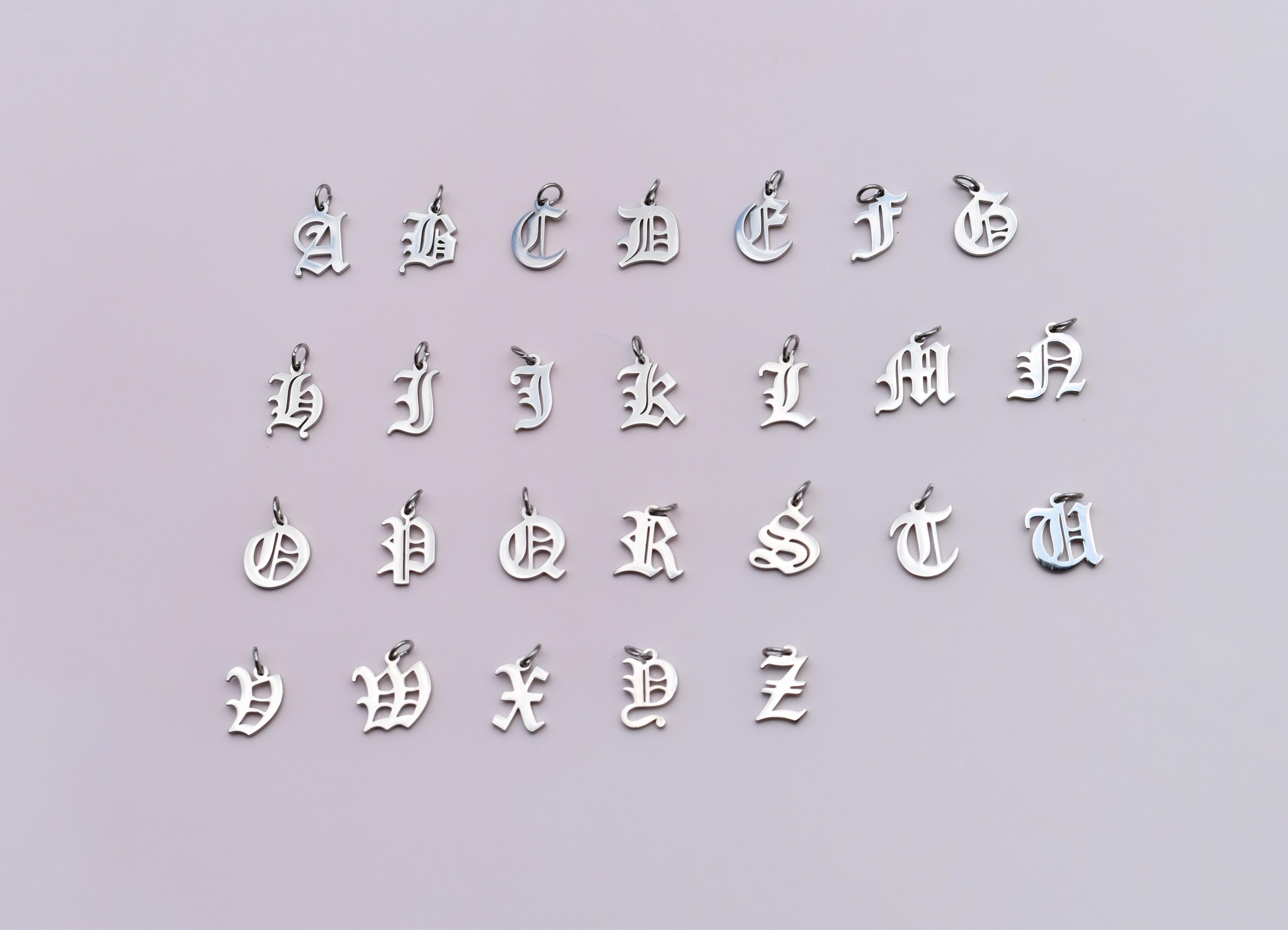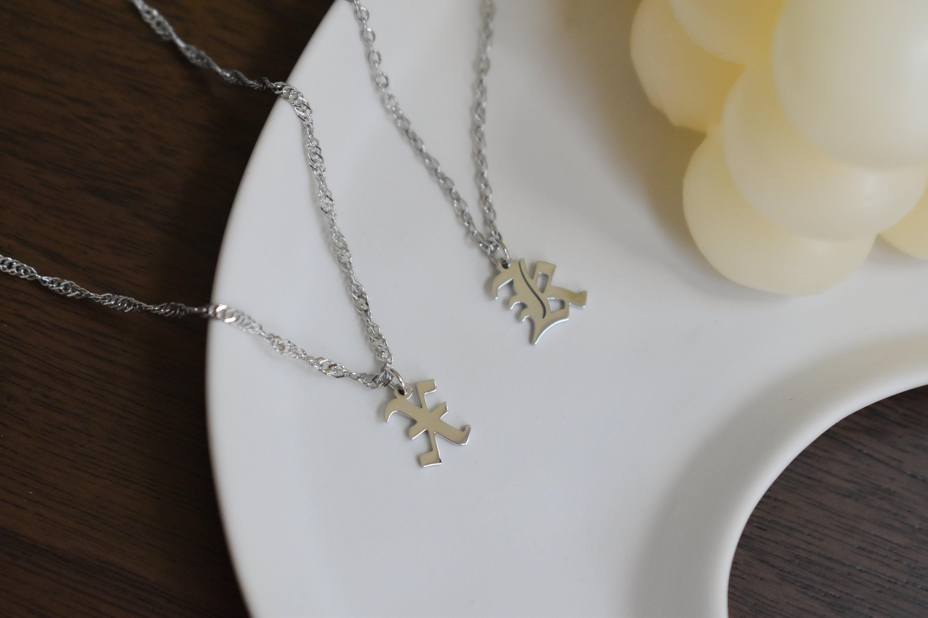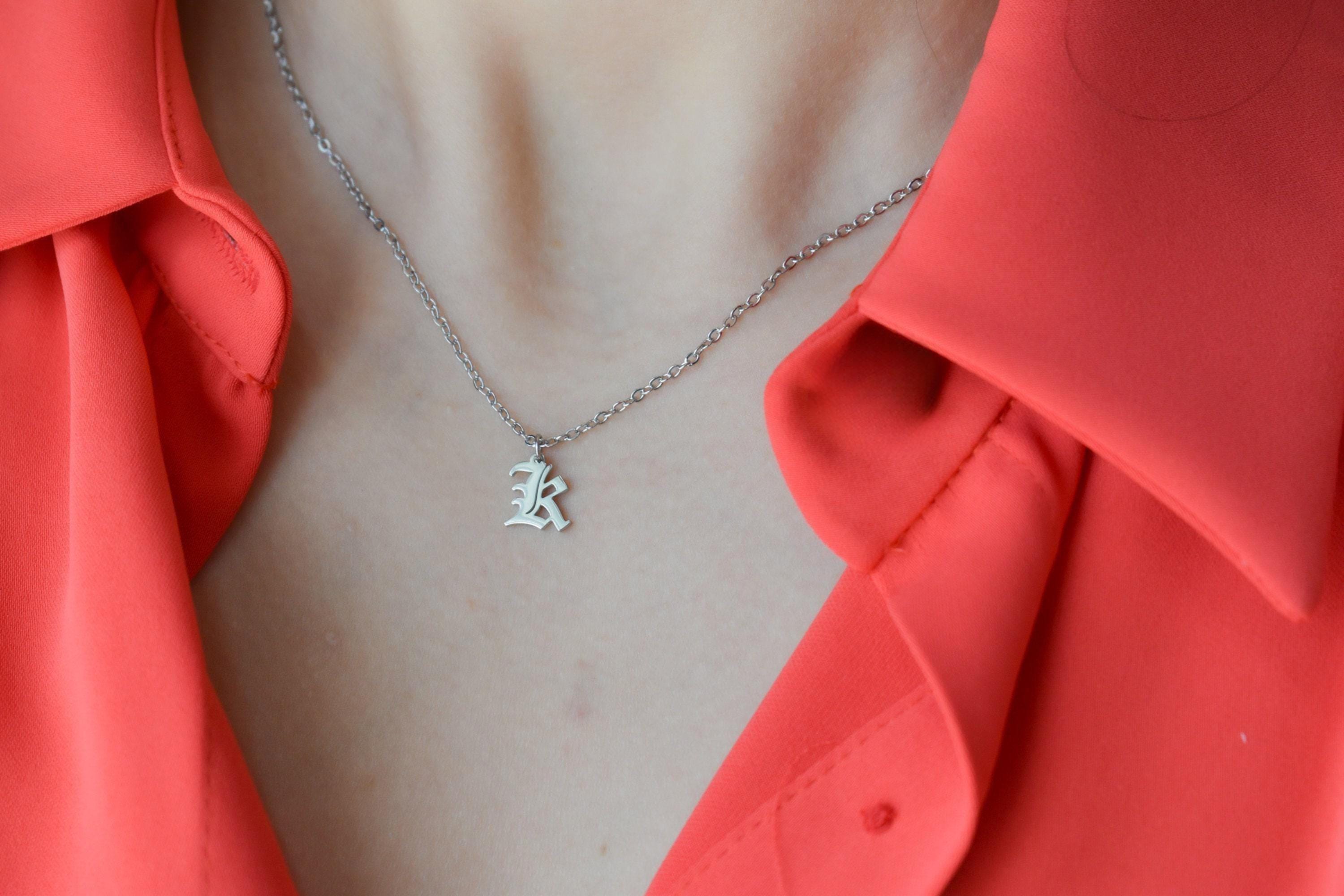Old English Font Alphabet Necklace, Sterling Silver K Initial Letter Necklace Best Gift For Her Him Silver Lover Birthday Anniversary Memory