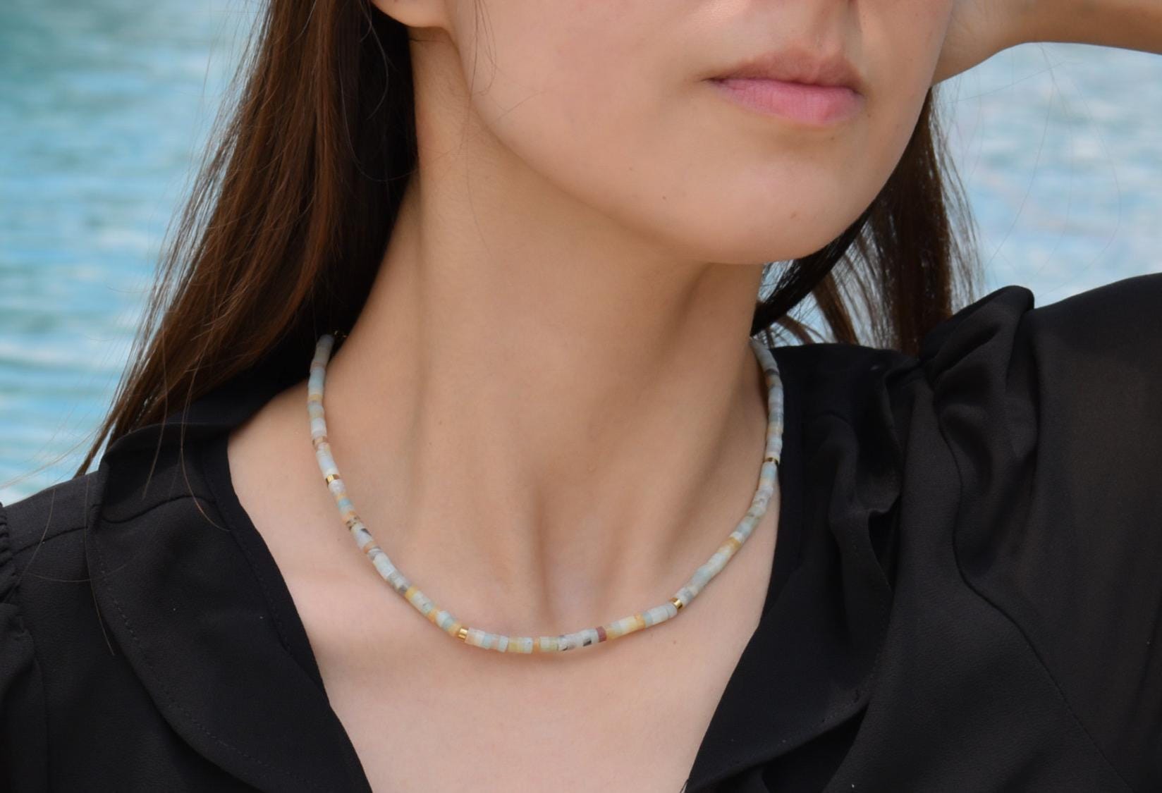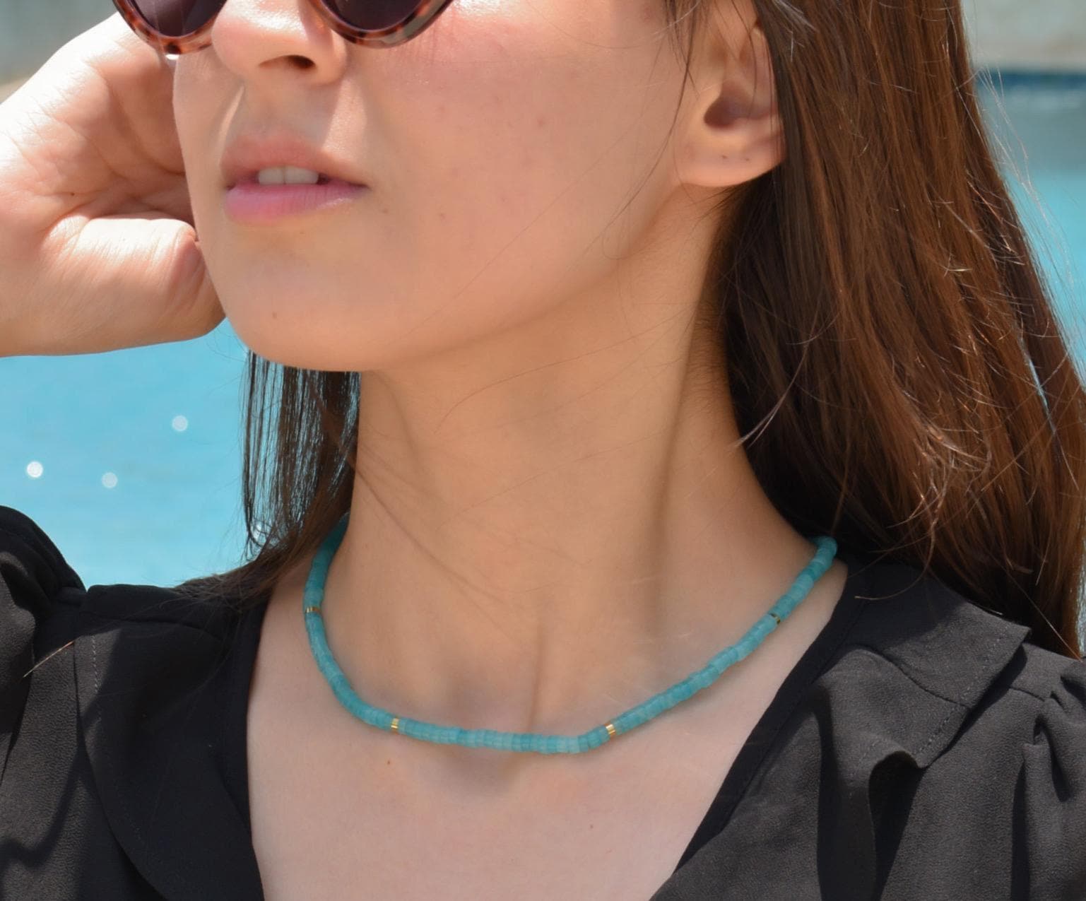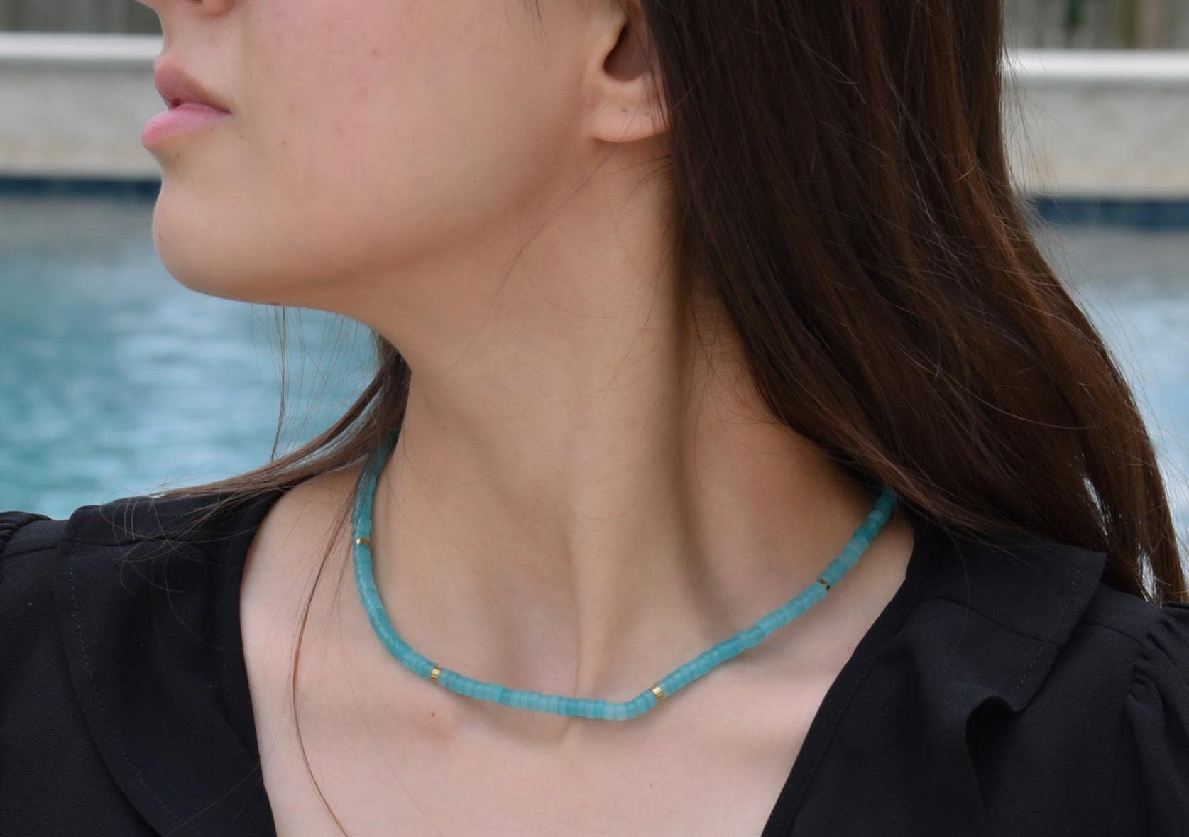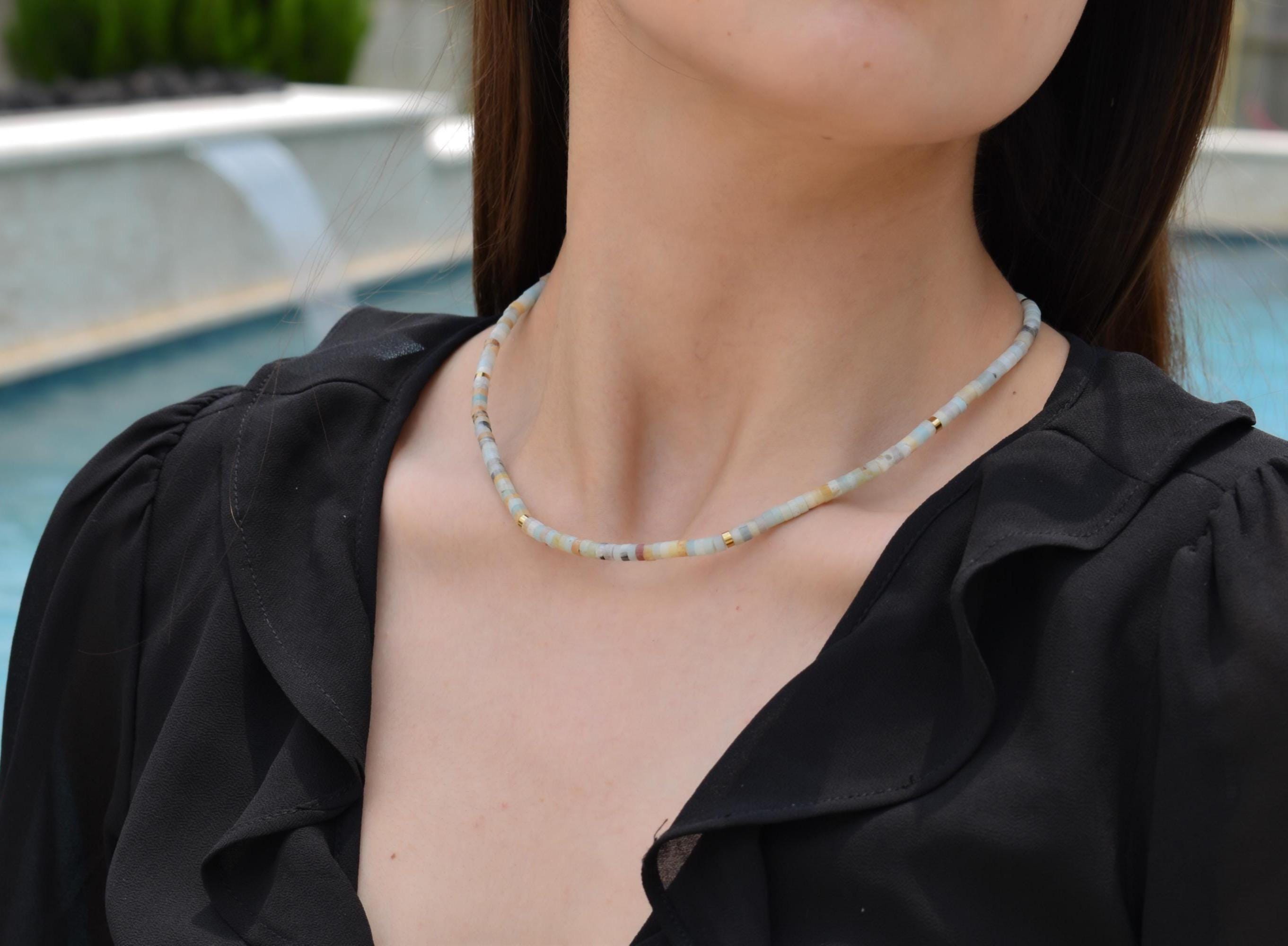 GOLD BEAD CHAIN NECKLACE COLORFUL BEAD NECKLACE, WATERPROOF JEWELRY Hand Knotted Gem Christmas Jewelry WATERPROOF ✨