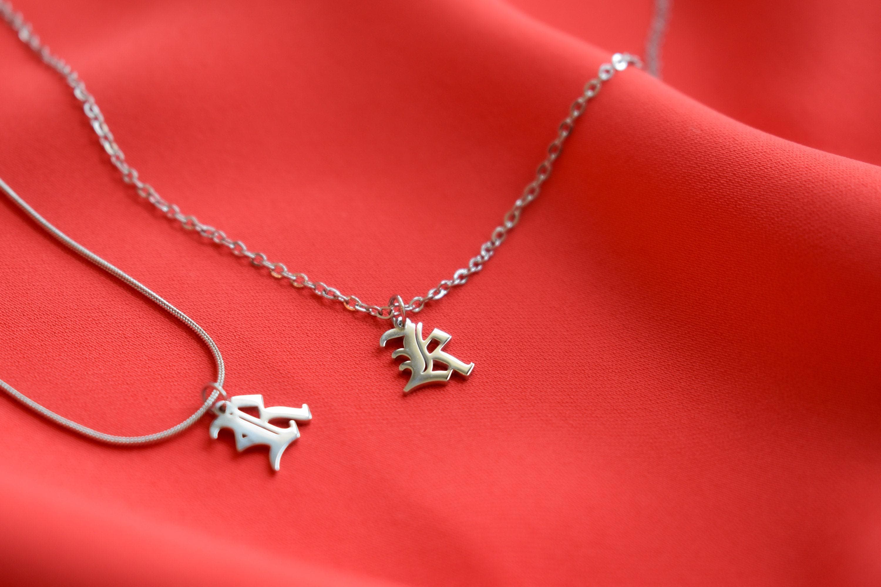 Anti Tarnish Silver Old English Letter Necklace, Silver Old English Initial Necklace, Old English Name Necklace WATERPROOF Necklace, Personalized Name Necklace